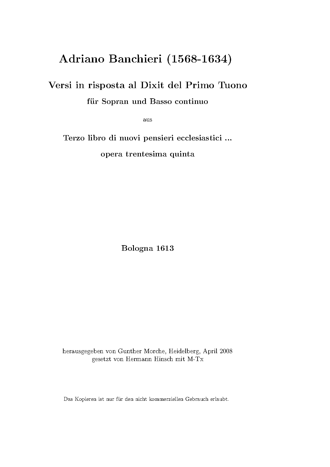 Versi in riposta al Dixit del Primo Tuono (Banchieri, Adriano)