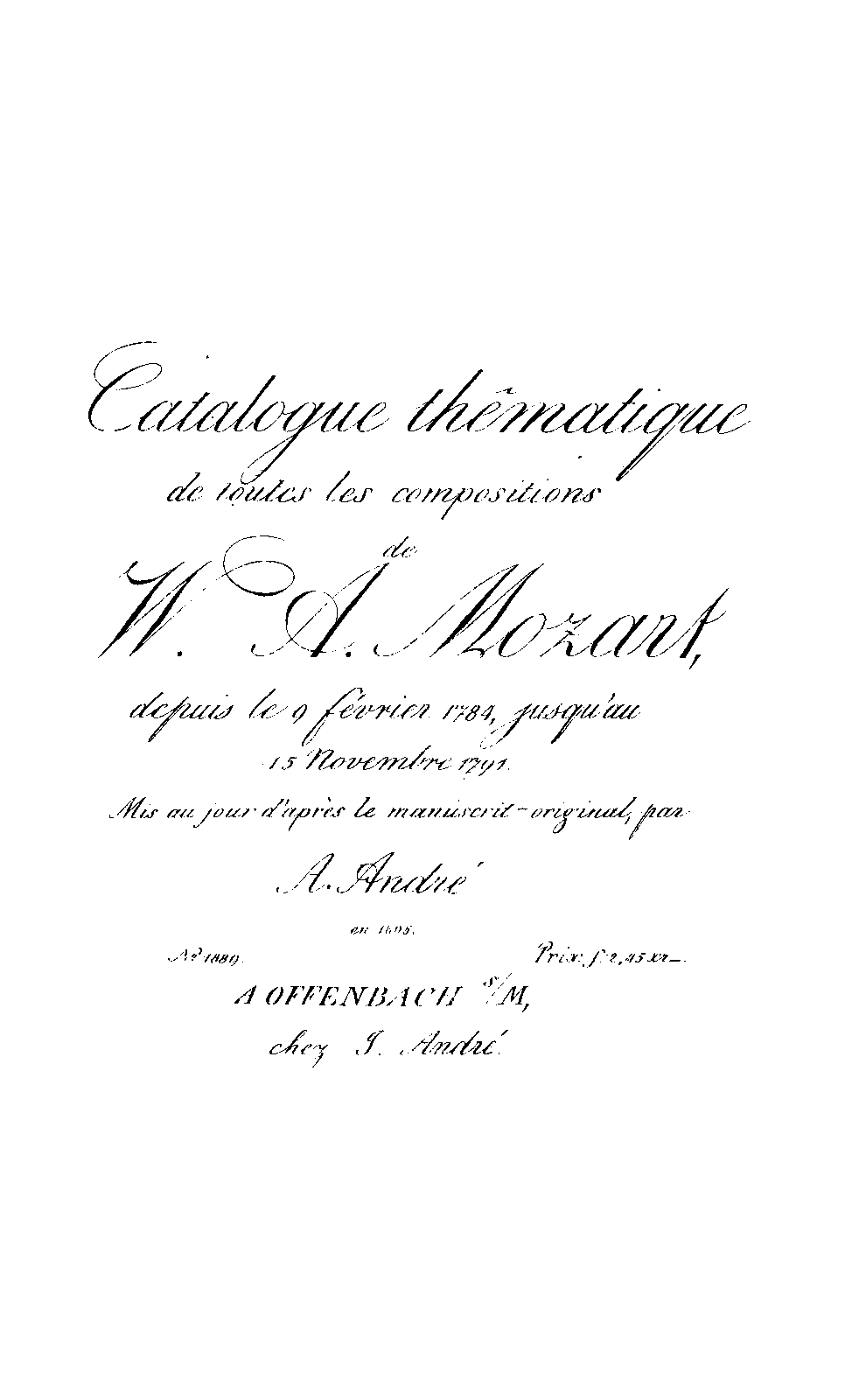 Mozart's thematic catalogue of his own works, kept from February 1784 until shortly before his death in December 1791.