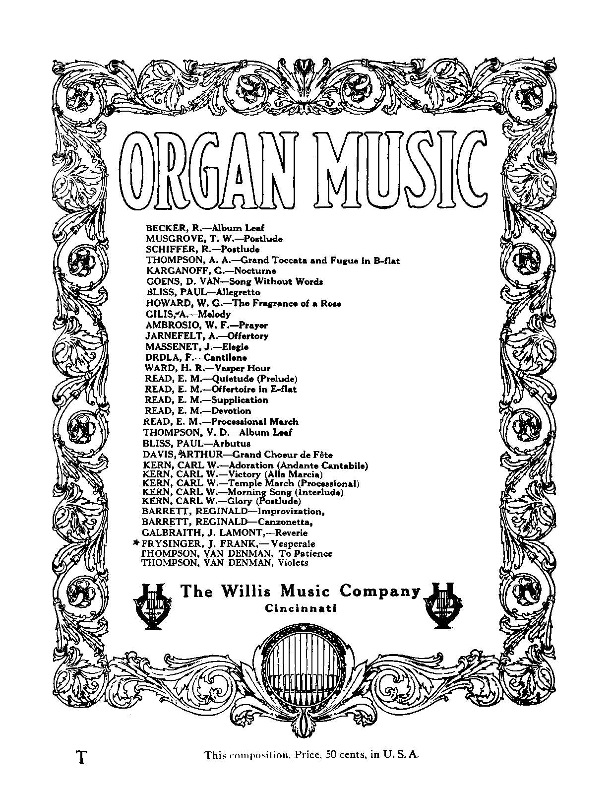 Publisher. Info. Cincinnati: The Willis Music Company, 1918. Plate 3435.