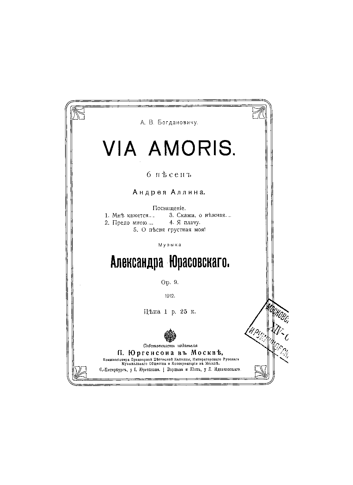 | Dedication | Aleksandra Bogdanovich (1846–1914)* |
