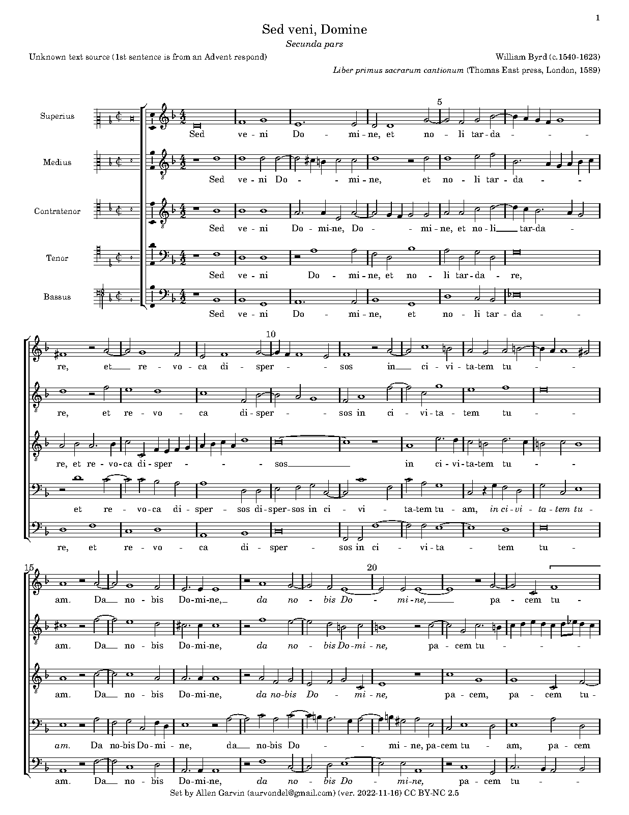 | Extra Information | The text used is from an unknown source, though the first sentence of the secunda pars is from an advent respond. |