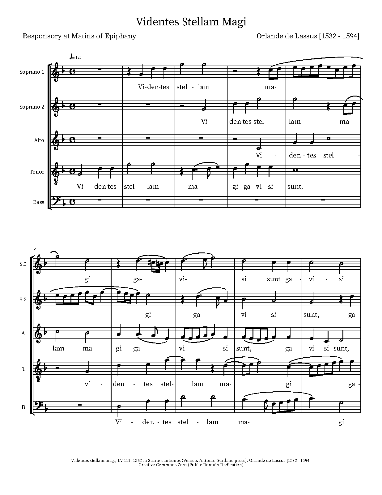 | First Publication | 1562 in Sacræ cantiones (Venice: Antonio Gardano press) |