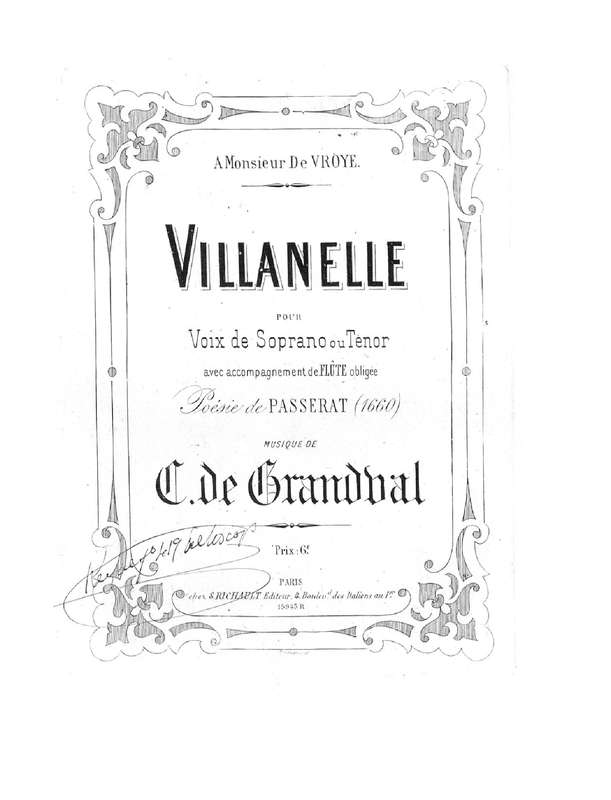 | Genre Categories | Villanelles; For voice, flute, piano; For voices with solo instruments; |