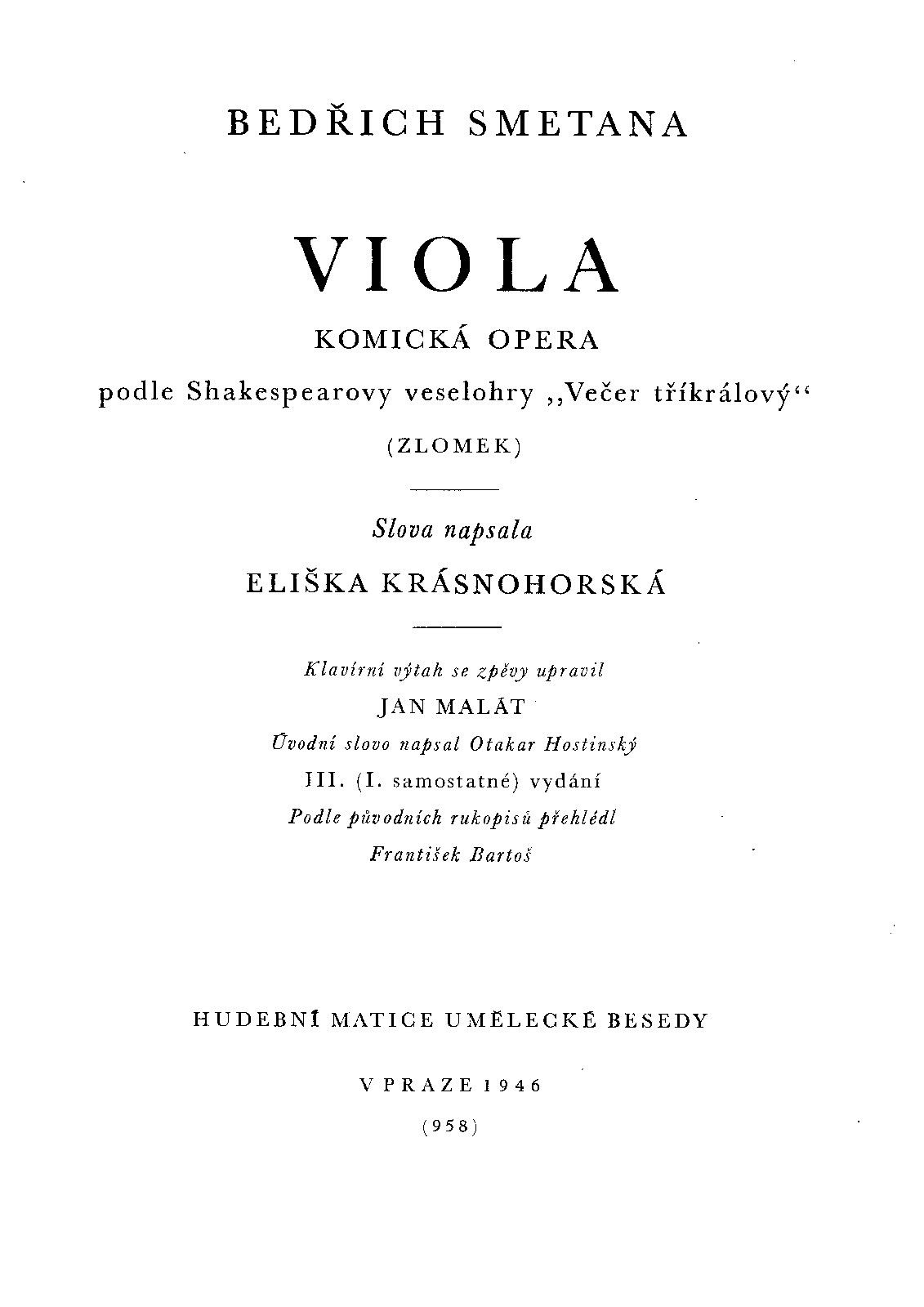 | First Performance. | 1900-03-15 – Prague, National Theatre [concert performance of extracts] |