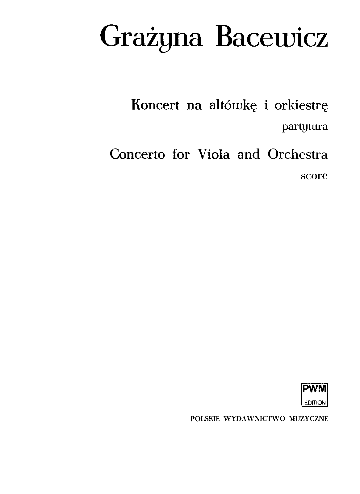 | First Performance. | 1969/06/20 in Warsaw Stefan Kamasa, viola; Witold Rowicki conducting the Warsaw National Symphony Orchestra |