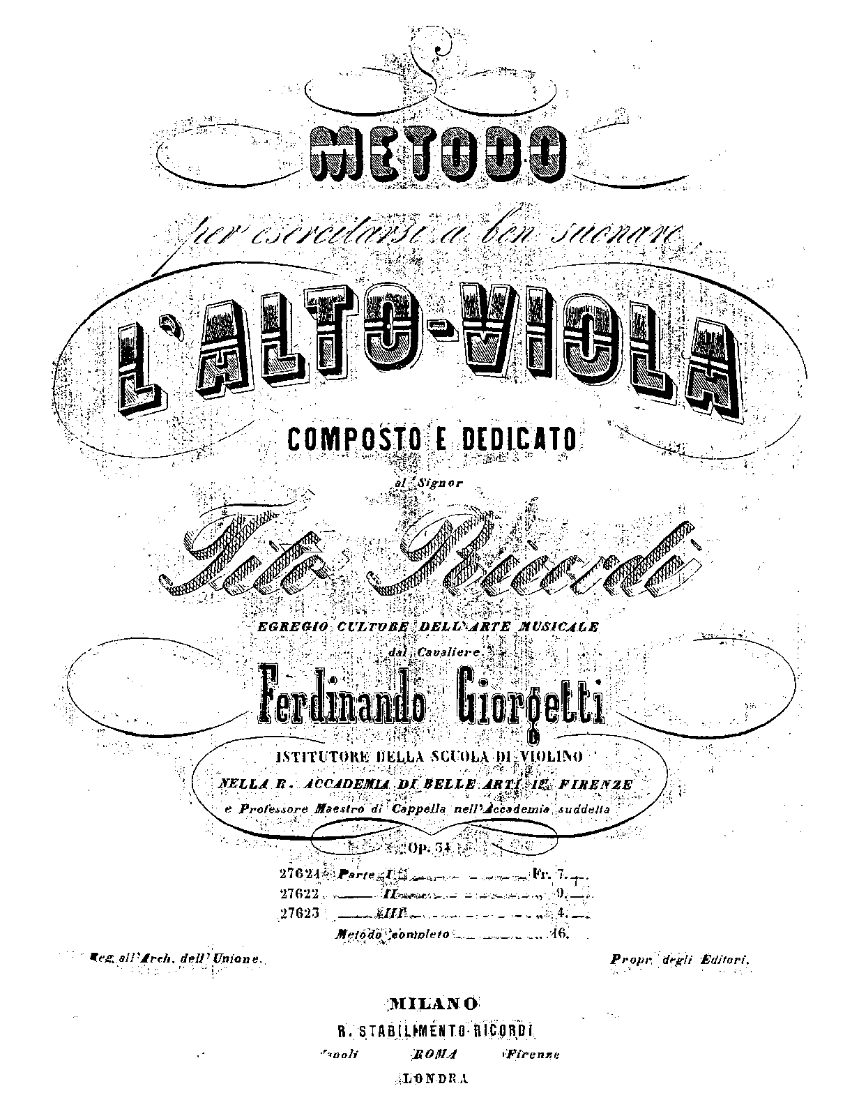 - Parte 1ª – Esercizi, Scale e Duetti (Exercises, Scales and Duets for Solo Viola, and 2 Violas)
