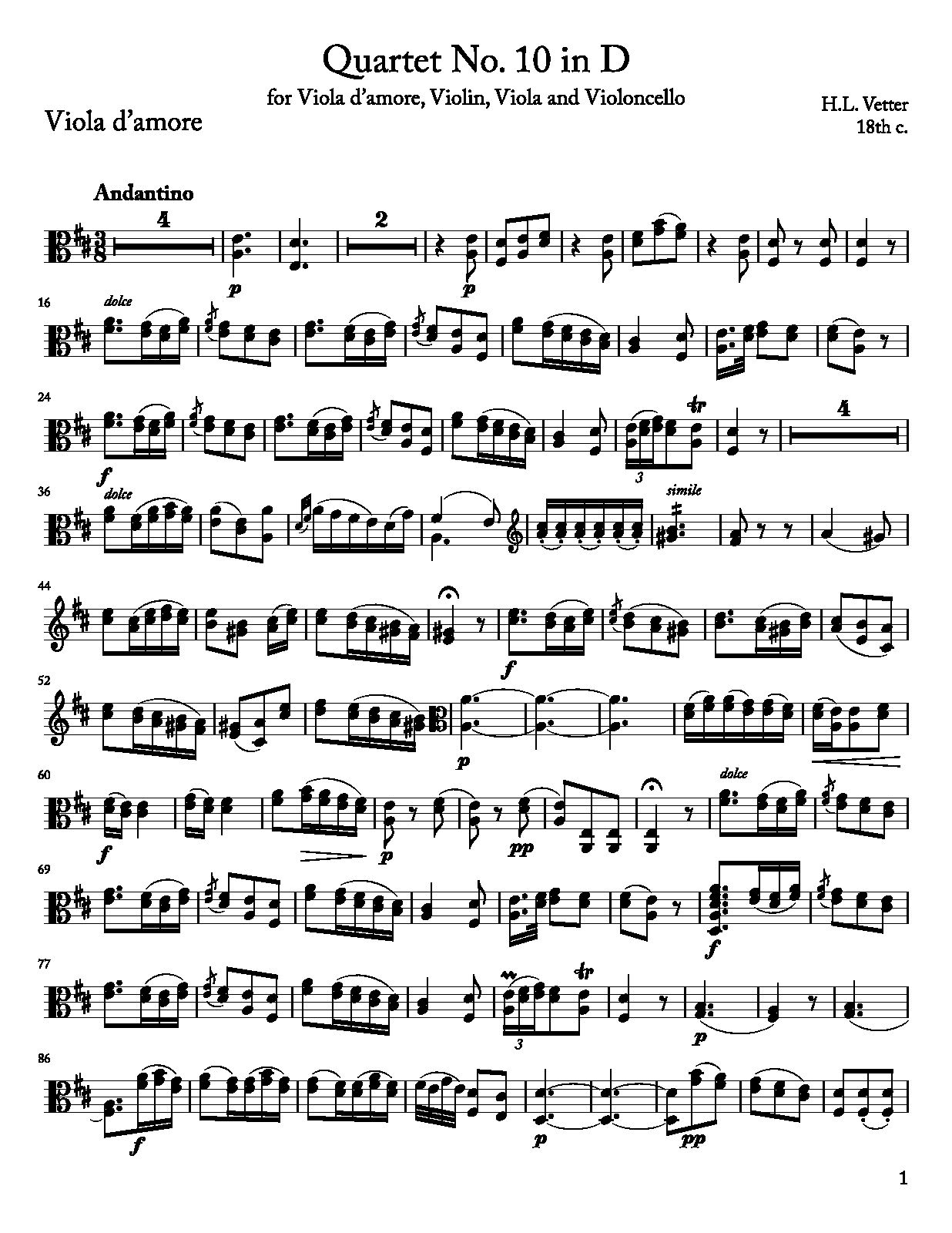 | Work Title | Viola d'amore Quartet in D major |