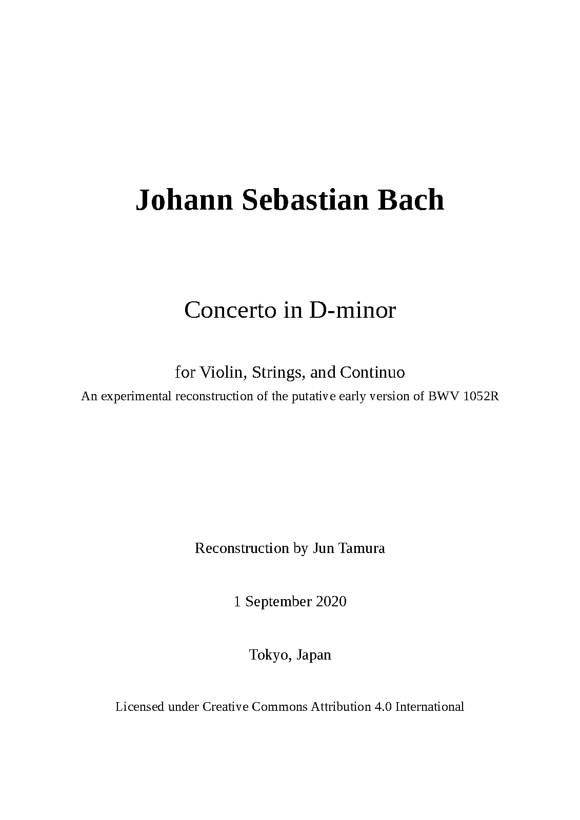 | Extra Information | The original score of the concerto has been lost, but it was subsequently arranged by Bach as the Harpsichord Concerto No.1 in D minor, BWV 1052. On the basis of the latter, it has been reconstructed by Ferdinand David (1873), Ferruccio Busoni (1899) and Robert Reitz (1917), among others. |