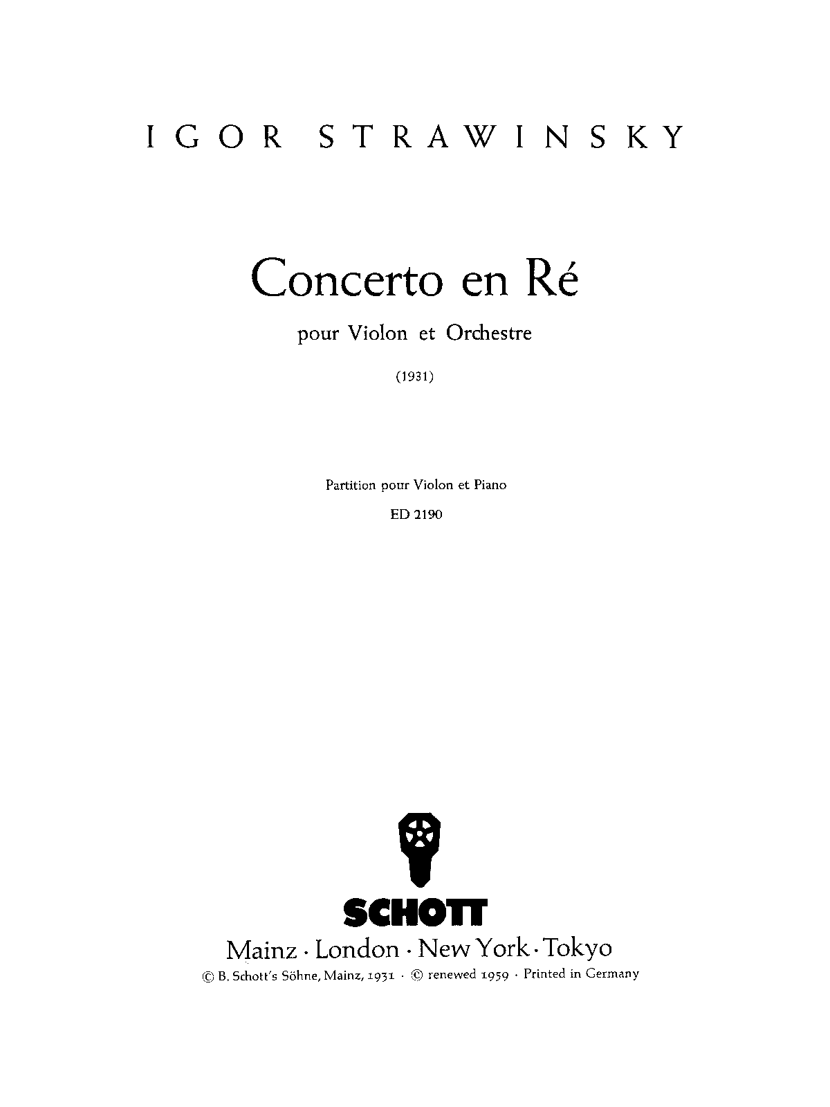 | Name Aliases | Violin Concerto in D; Vioolconcert (Stravinsky); Concerto pour violon et orchestre en ré |
