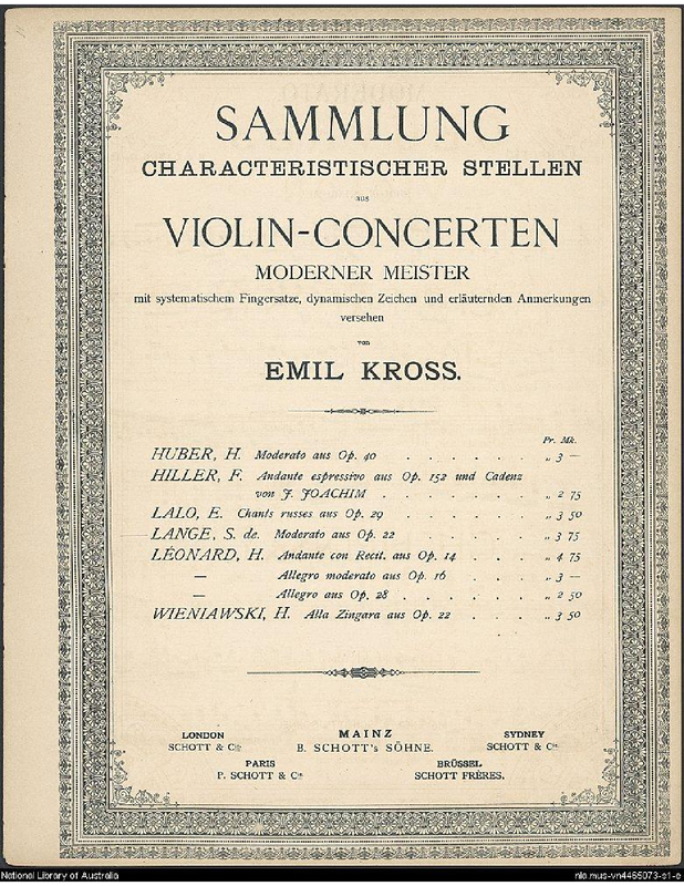 D minor, not major- see below. Plate number of piano reduction (by Hubert Léonard) at Dutch Royal Library has plate 22370 also (released 1878 according to HMB, if this is the same piano reduction.) (Schissel) (concerto is sometimes described as being "in D major", but this is belied by the score, where only a small section of the large-scale first movement - which begins and ends in minor- and also much of the finale, are in D major- by which standards Beethoven's 5th would be in C major. It may be because of language mistranslation or some other reason.)