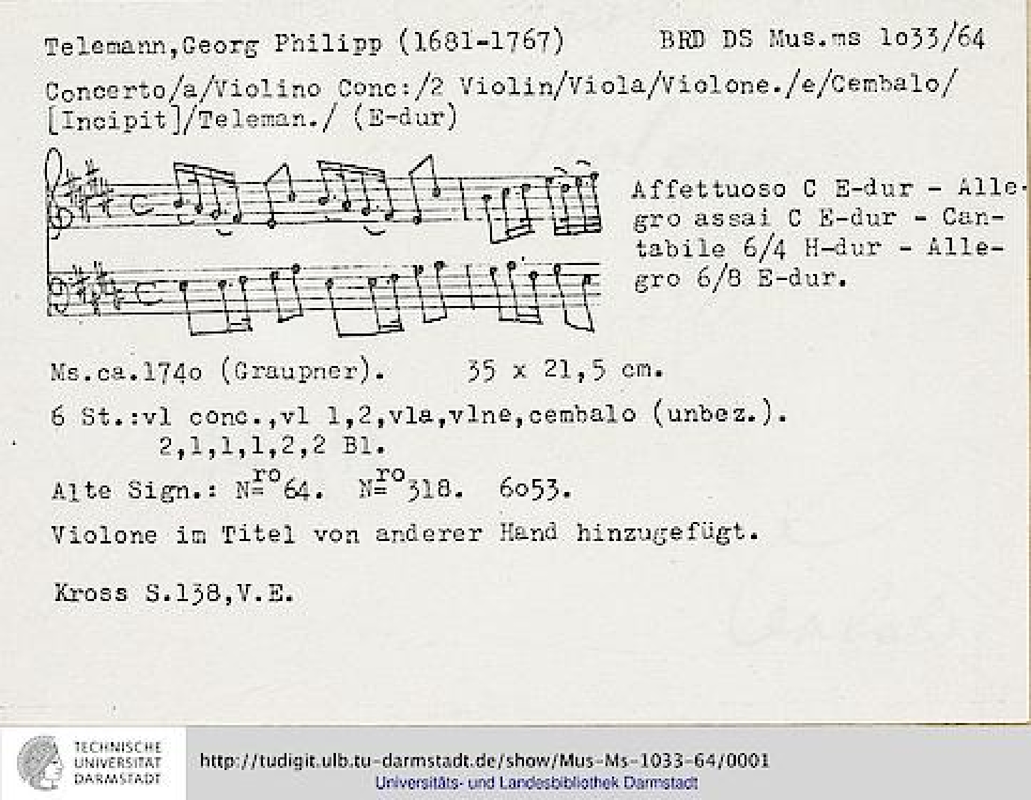 | Opus/Catalogue NumberOp./Cat. No. | TWV 51:E2 |