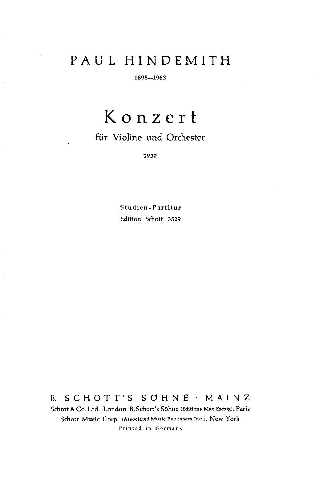 Publisher. Info. Mainz: B. Schott's Söhne, No. 3634, 1939. Plate 36053.