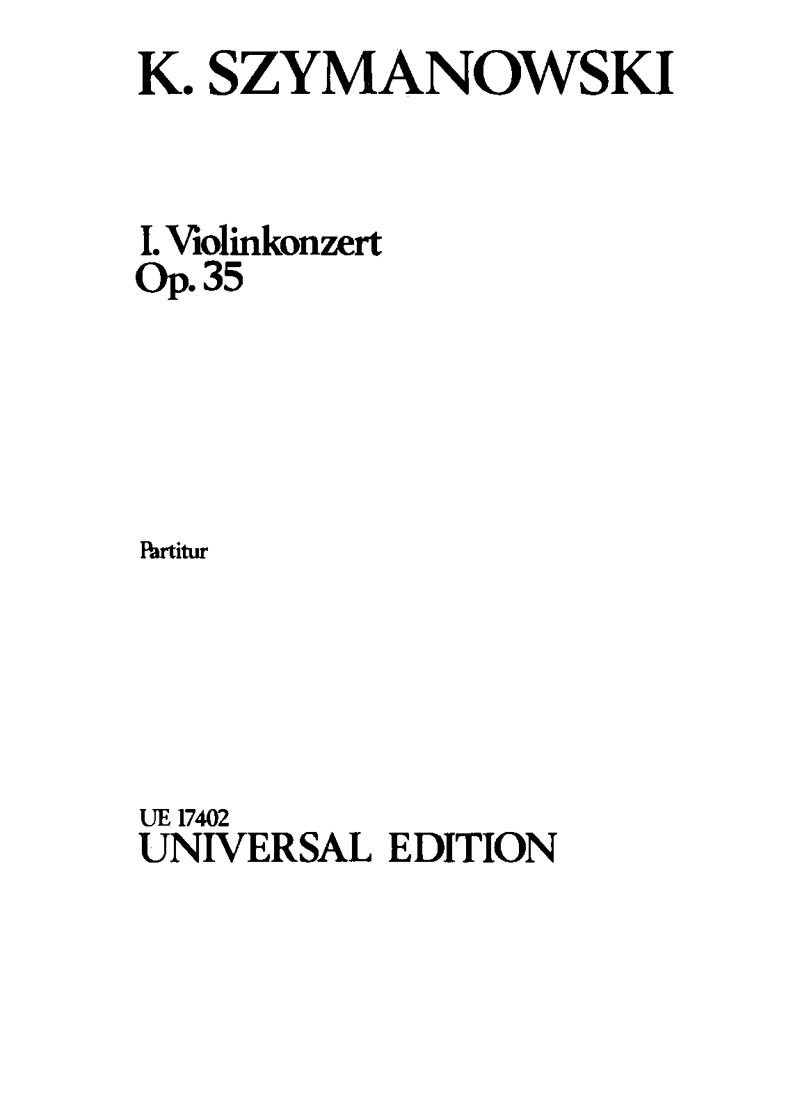| Name Aliases | Vioolconcert nr. 1 (Szymanowski); Violin Concerto No. 1, Op. 35 |