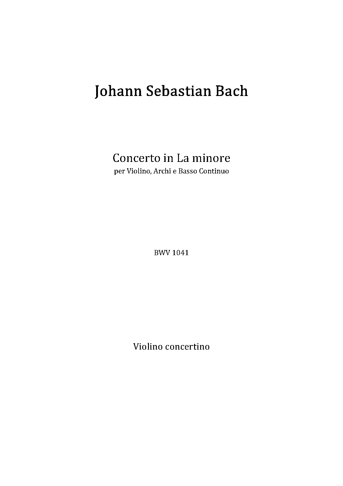 Name Translations Fiolinkonsert i a-moll av Bach; ヴァイオリン協奏曲第1番; BWV 1041 — Концерт за цигулка ла минор; Concerto pour violon en la mineur; Keman konçertosu no. 1; Concert per a violí en la menor; Concerto per vriulon en la menor; A-moll hegedűverseny (Johann Sebastian Bach); Vioolconcert in a-klein; Concerto per violino in la minore; Concertul pentru vioară în La minor; Violin-Konzert in a-moll, BWV 1041; Κονσέρτο για βιολί σε Λα ελέσσονα; Concierto para violín en la menor, BWV 1041