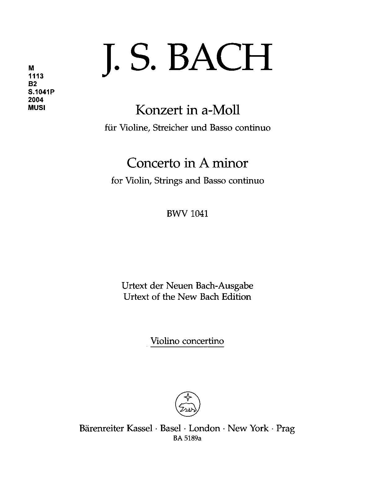 Opus/Catalogue NumberOp./Cat. No. BWV 1041