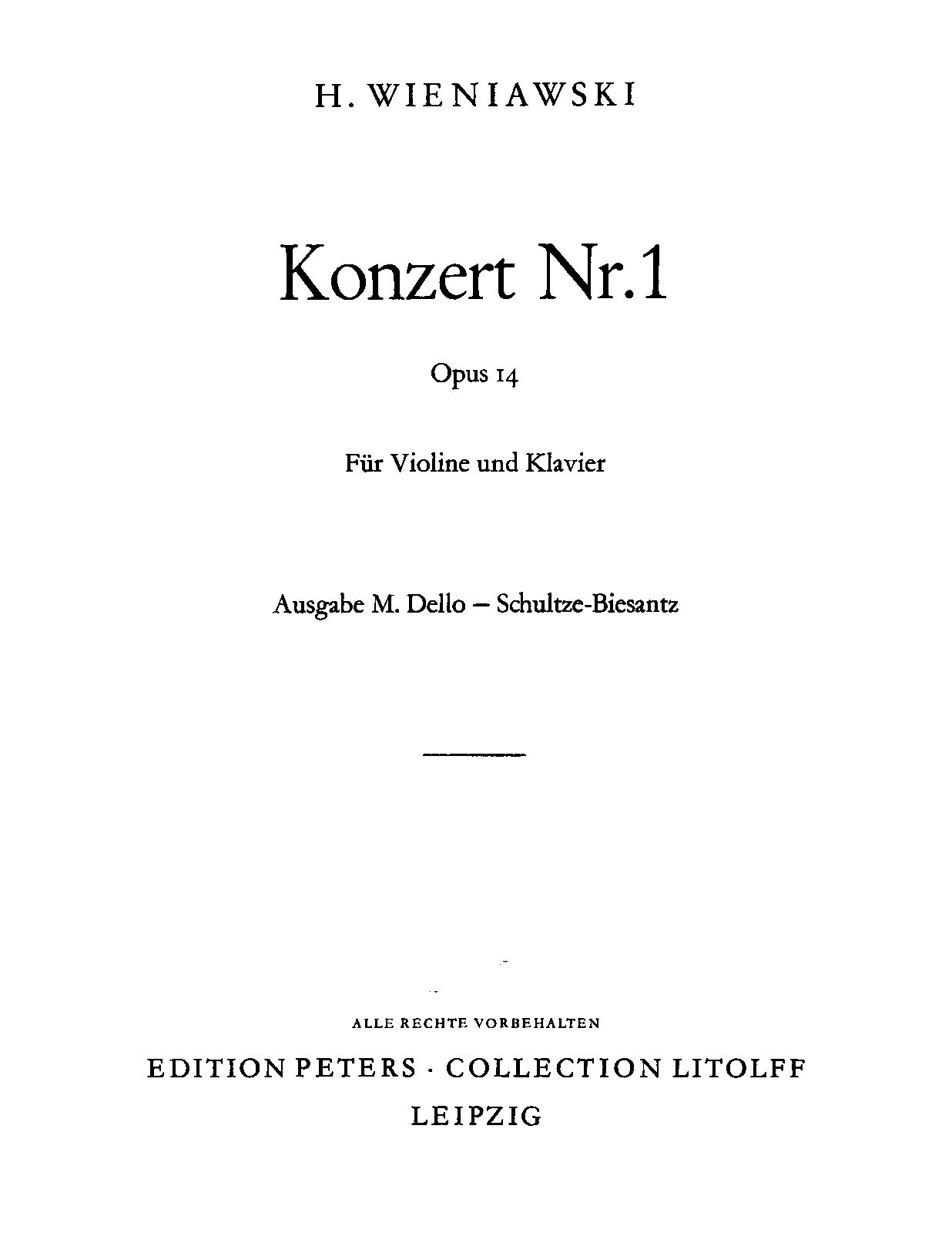 | Name Translations | Violin Concerto No. 1; ヴァイオリン協奏曲第1番 (ヴィエニャフスキ); Concerto pour violon nº 1; 第二小提琴协奏曲; Concierto para violín n.º 1 (Wieniawski) |
