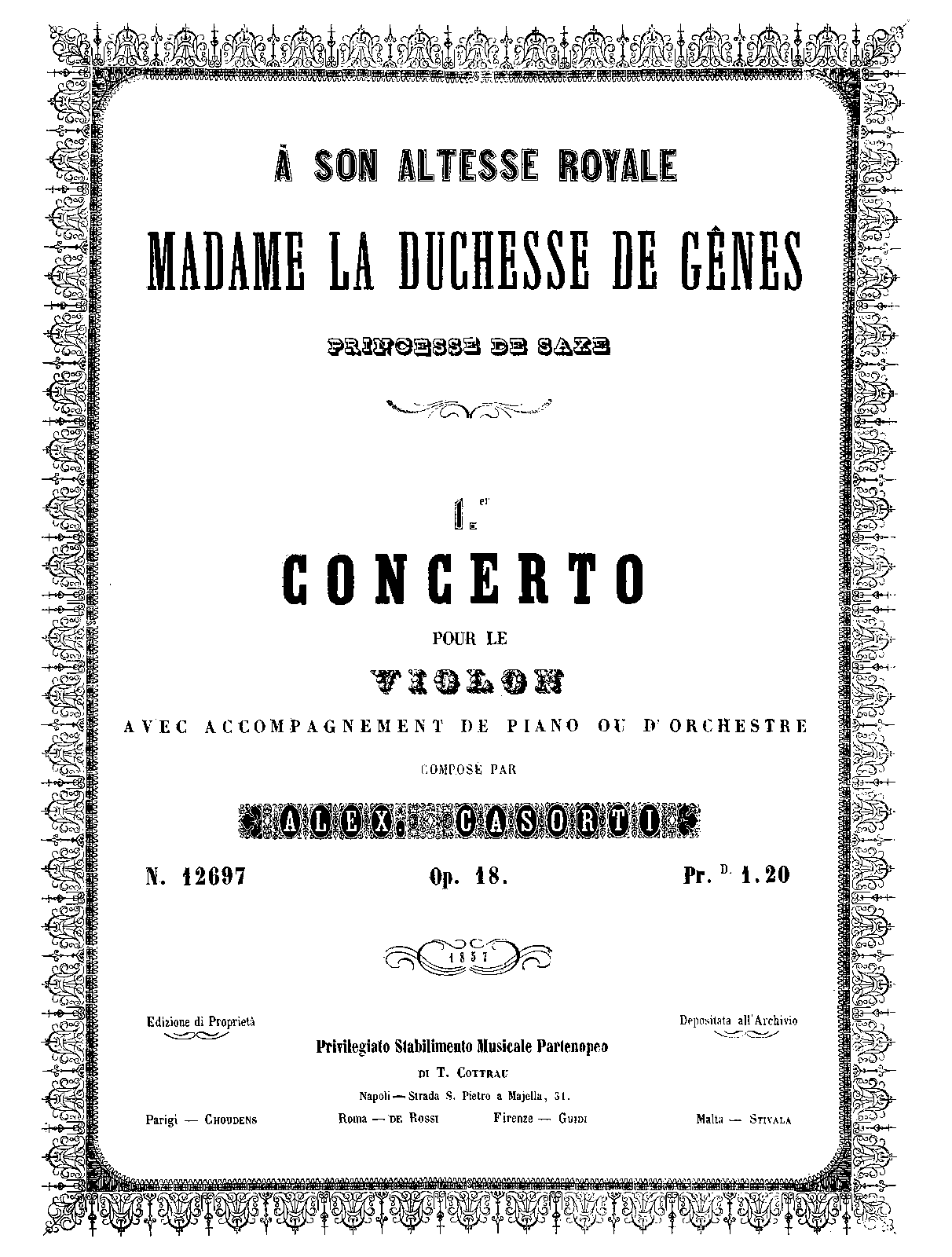 | Dedication | à son altesse royale Madame la Duchesse de Gênes, Princesse de Saxe |