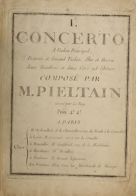 | Alternative. Title | Ier Concerto a Violon Principal, Premier et Second Violon, Alto et Basse deux Hautbois et deux Cors ad libitum |