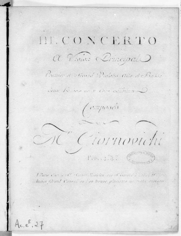 | Alternative. Title | IIIe. Concerto a violon principal, premier et second violons, alto et basse, deux hautbois, deux cors, adlibitum |