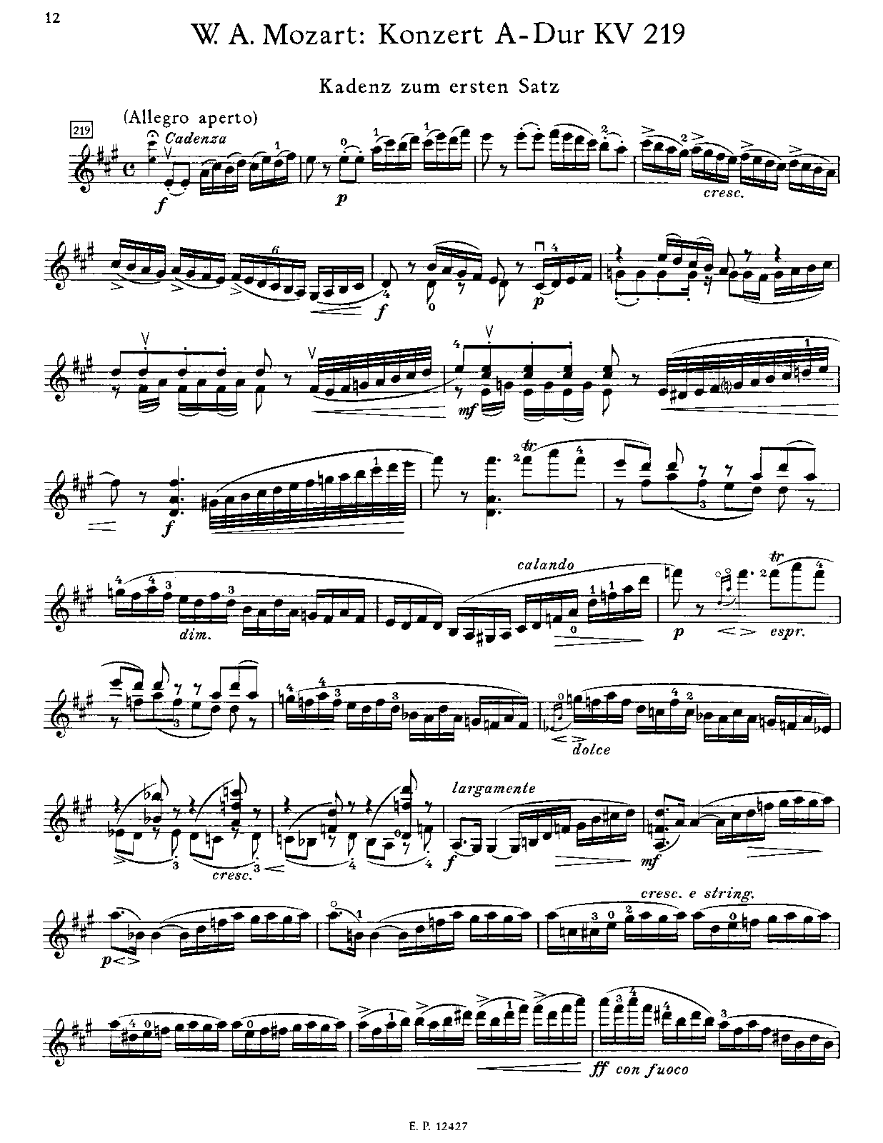 | Opus/Catalogue NumberOp./Cat. No. | K.219 |