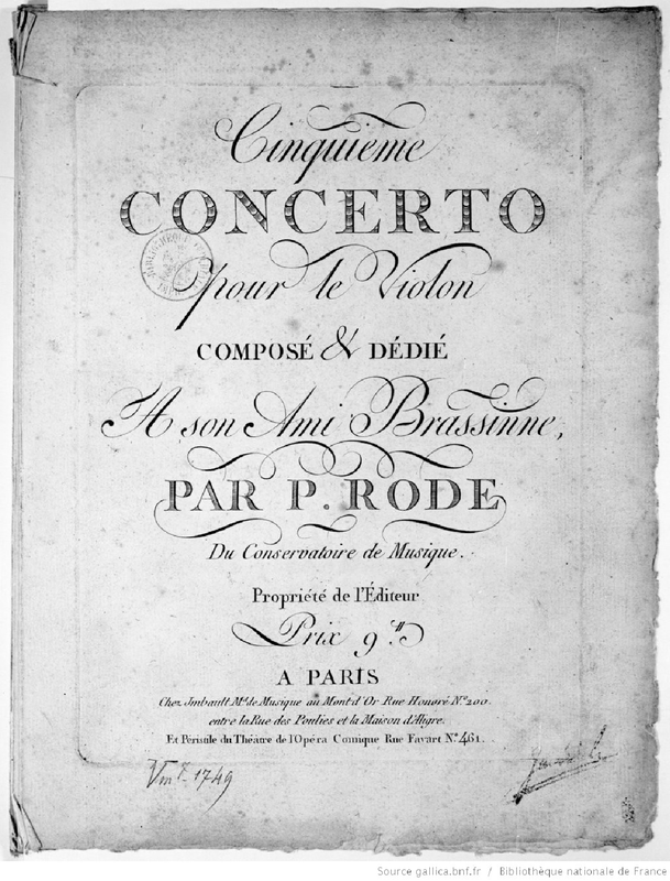 | Alternative. Title | Cinquieme Concerto pour le Violon |