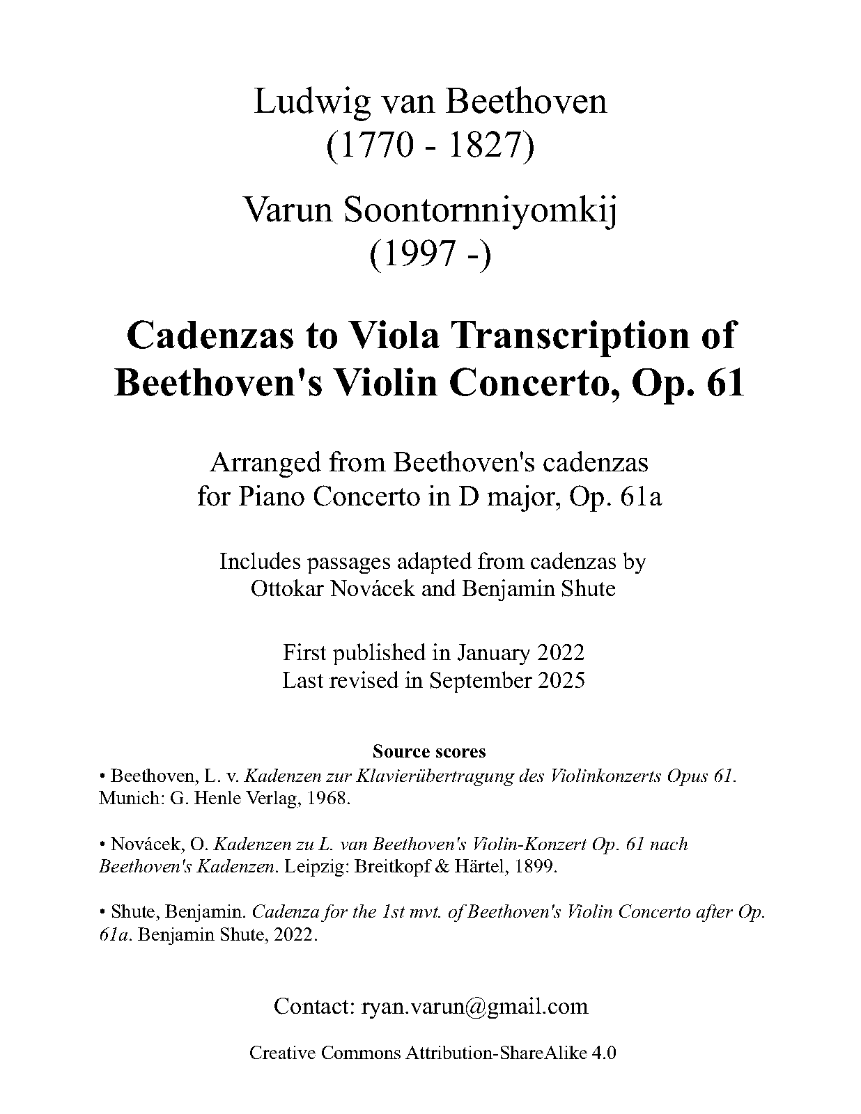 | Related Works | Piano Concerto in D major, Op.61a (Composer's arrangement for piano and orchestra) |