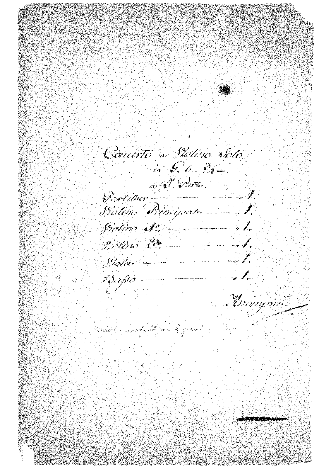 | Alternative. Title | Concerto a Violino Solo a 5. Parte |