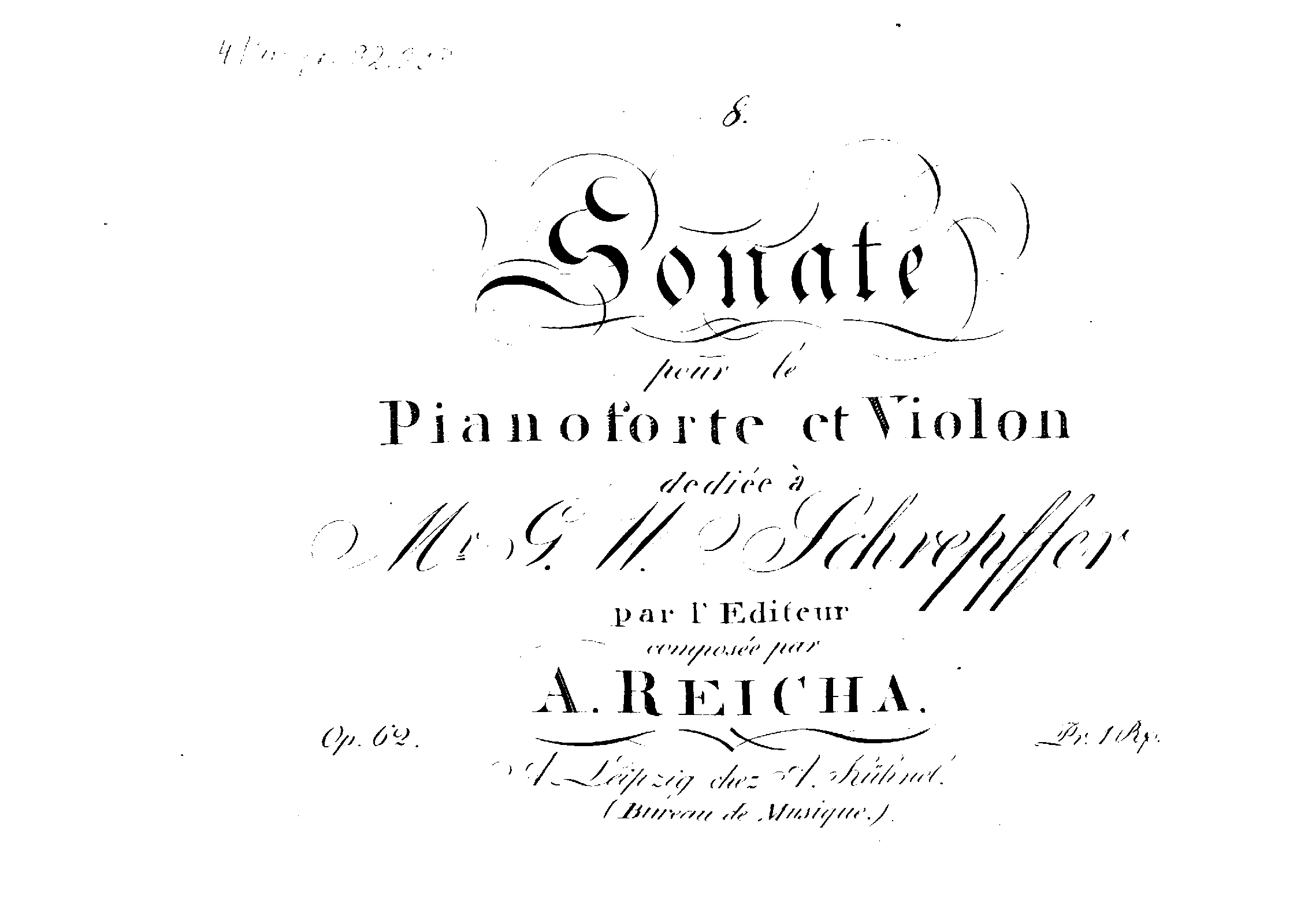 | Extra Information | Recorded on LP with Franck's sonata ("Le Maître Antonin Rejcha L'élève César Franck Leur Sonate") in 1970. |