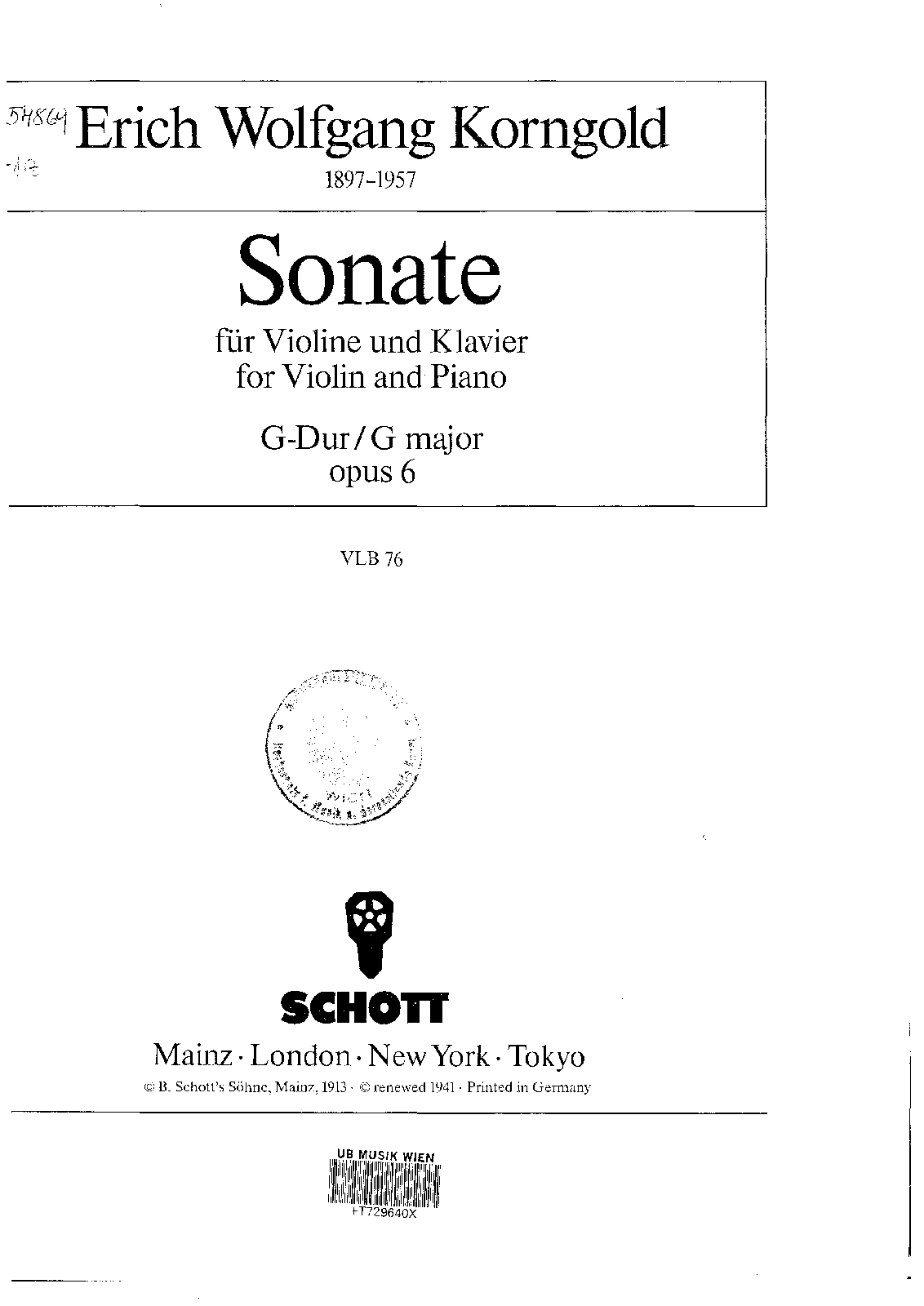 | External Links | A Performer's Guide to Erich Wolfgang Korngold's Sonata for Violin and Piano in G major, Op.6 (DMA work by Emily Ruth Laminack, 2011, PDF) |
