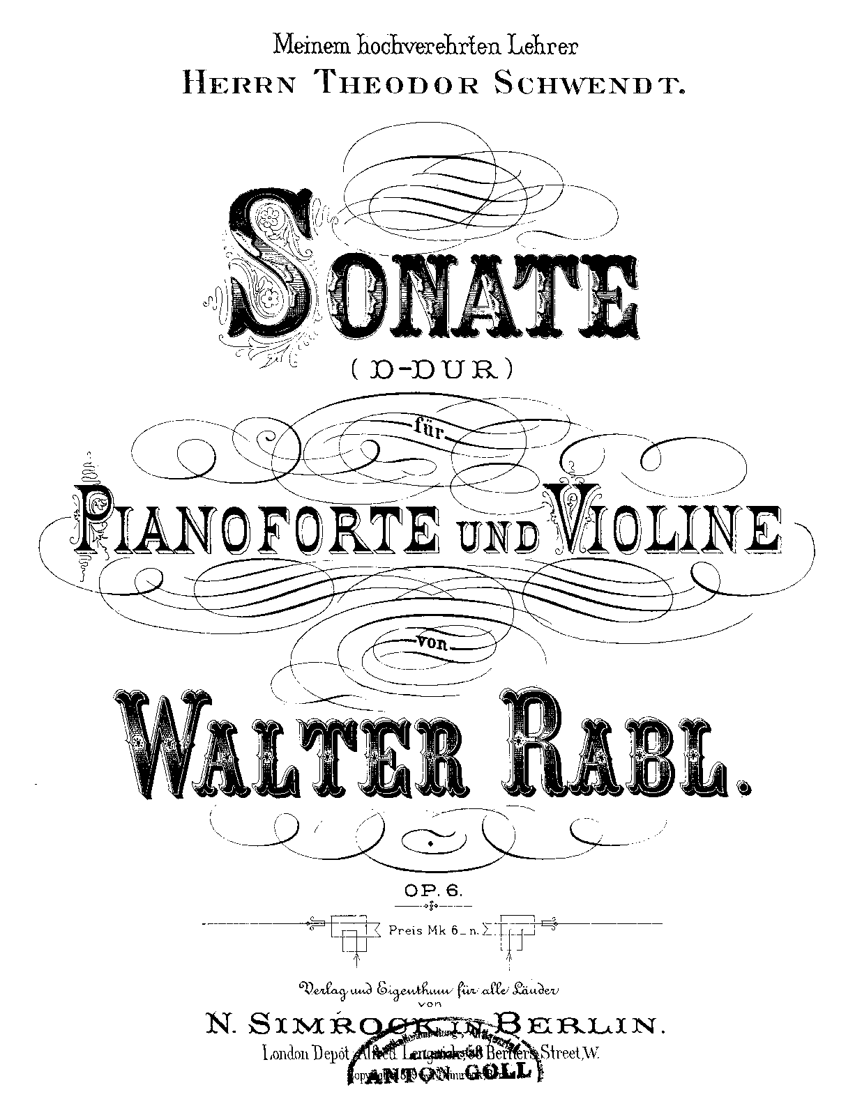 Republished (with editorial corrections*, see preface) in 1996, Recent researches in the music of the nineteenth and early twentieth centuries, v. 24, A-R Editions (Rabl, Complete Instrumental Chamber Works. Ed. John F. & Virginia F. Strauss.)