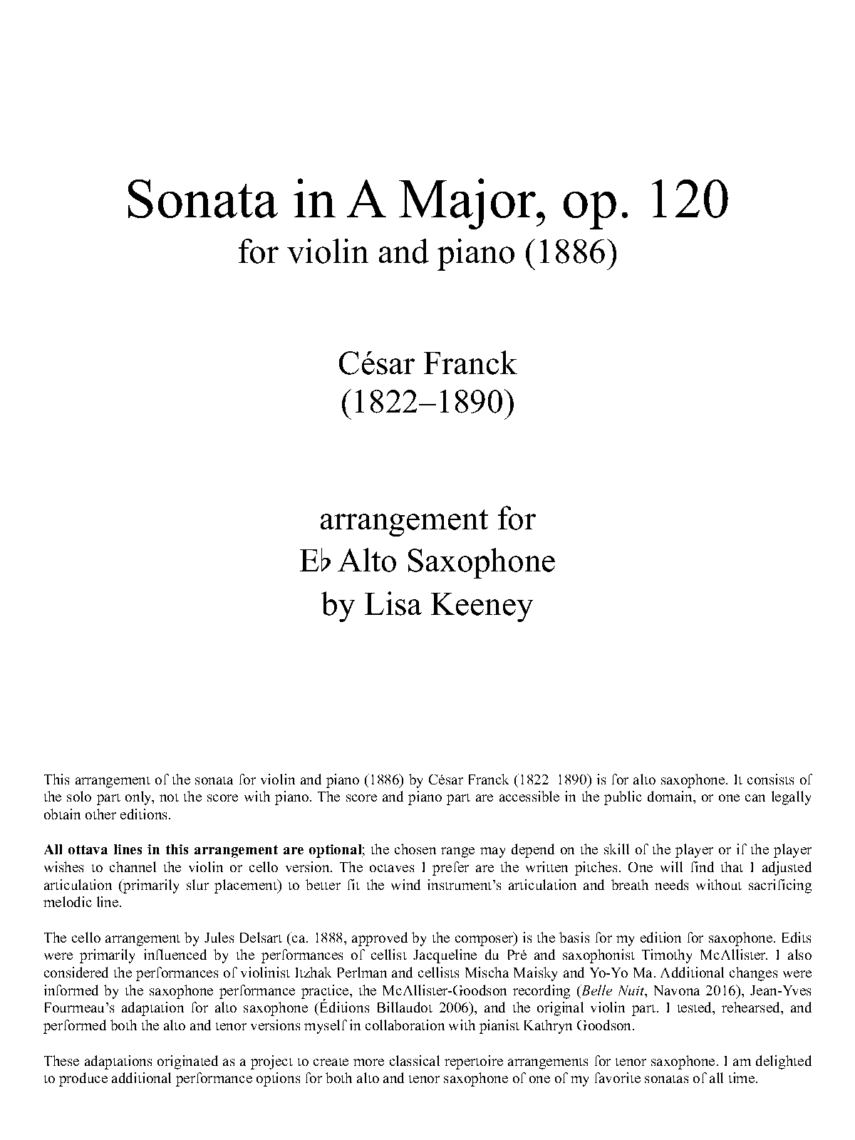 | Name Aliases | Sonata for Violin and Piano in A Major; Violin Sonata in A Major; Sonata in A major for Violin and Piano; Vioolsonate (Franck); Franckin vulusonaatti A-duuri |