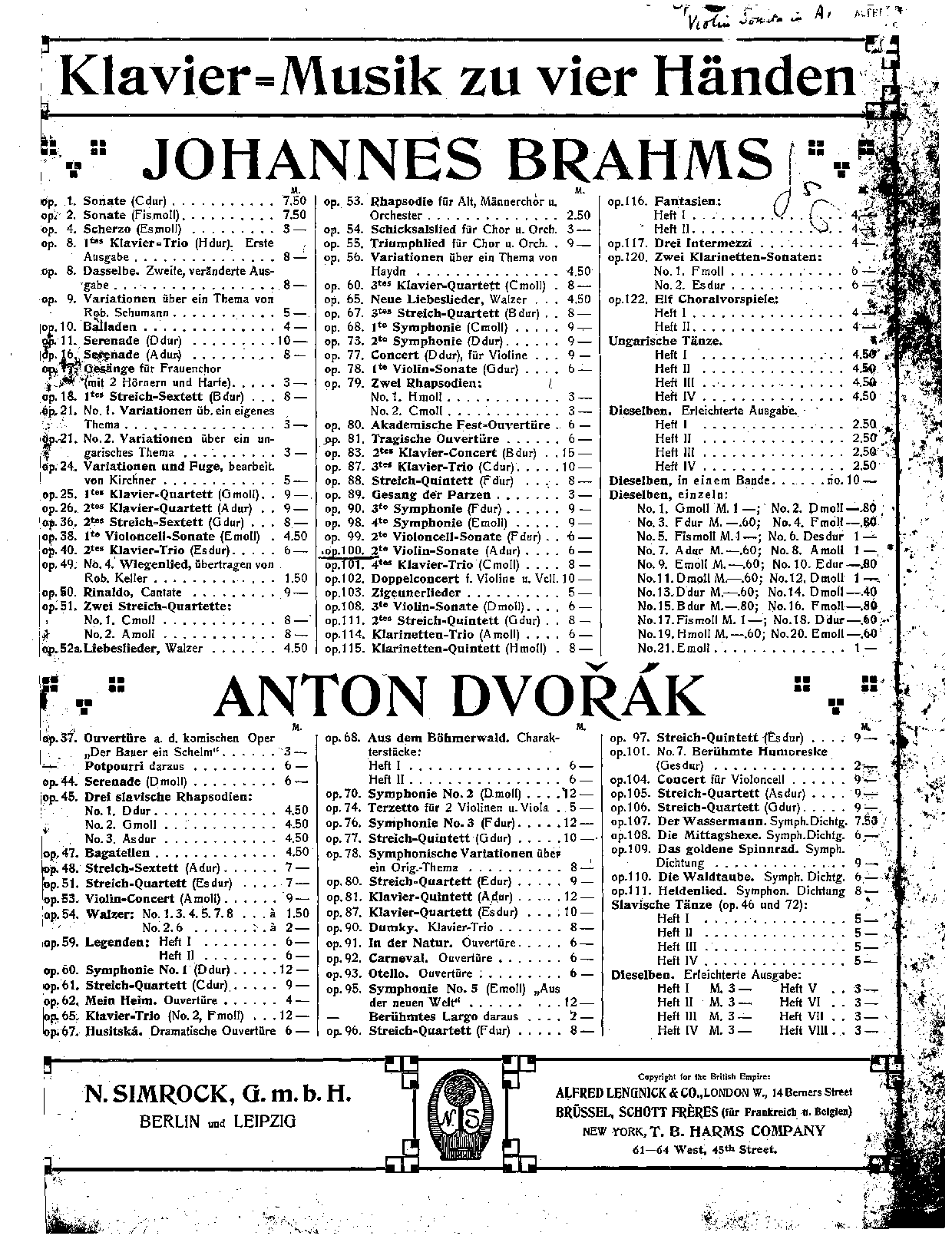 | First Publication. | 1887 (April) Berlin: N. Simrock |