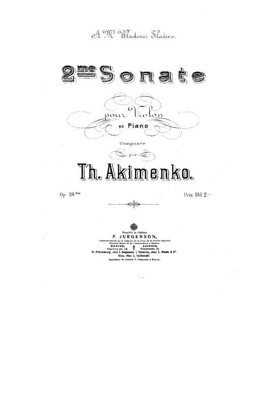 | First Publication. | 1911 - Moscow: P. Jurgenson |