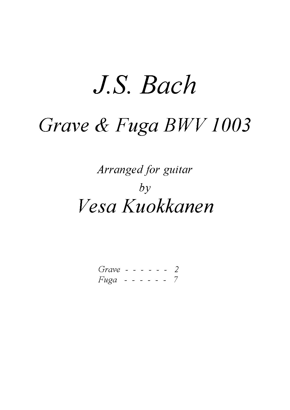 Misc. Notes As done for the Cello Suites BWV1007-1012, the hidden 3 voices canon structure of this piece was unveiled