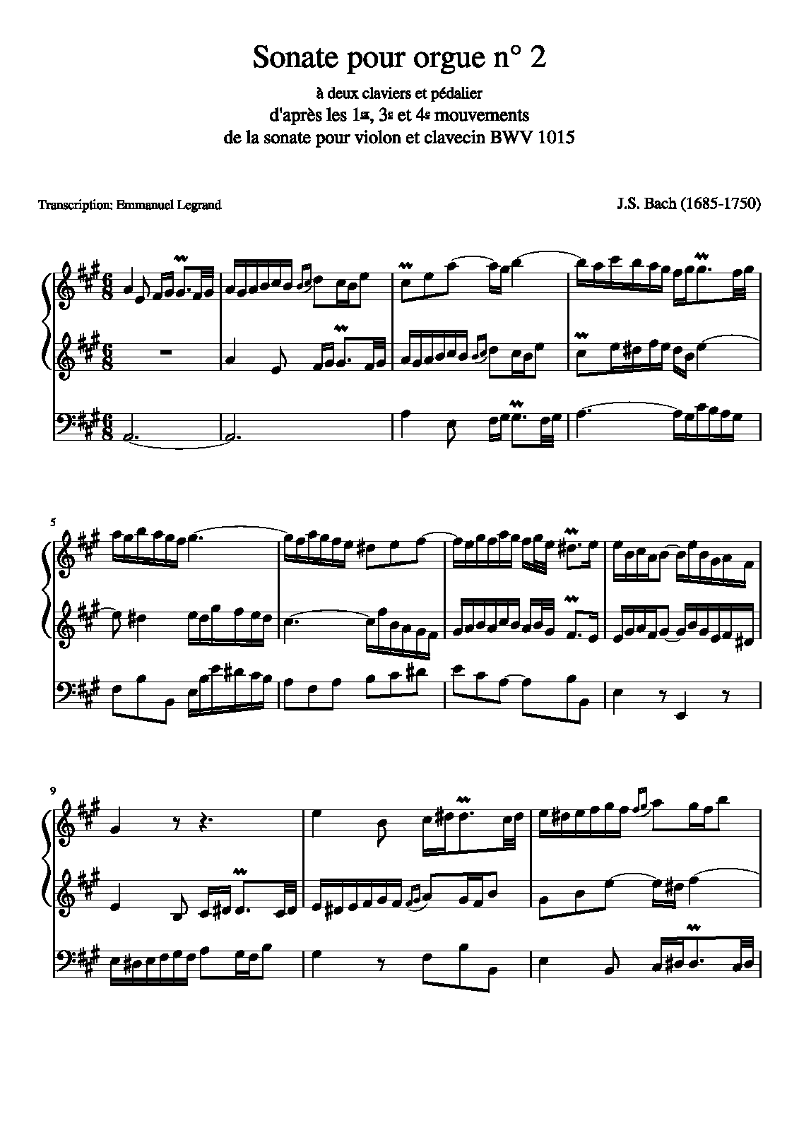 Name Translations Sonata in A major for violin and harpsichord; Sonata II A-Dur BWV 1015
