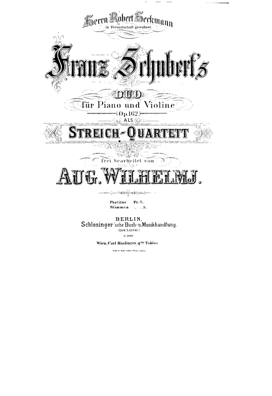 | First Publication. | 1851 – Vienna: Diabelli |