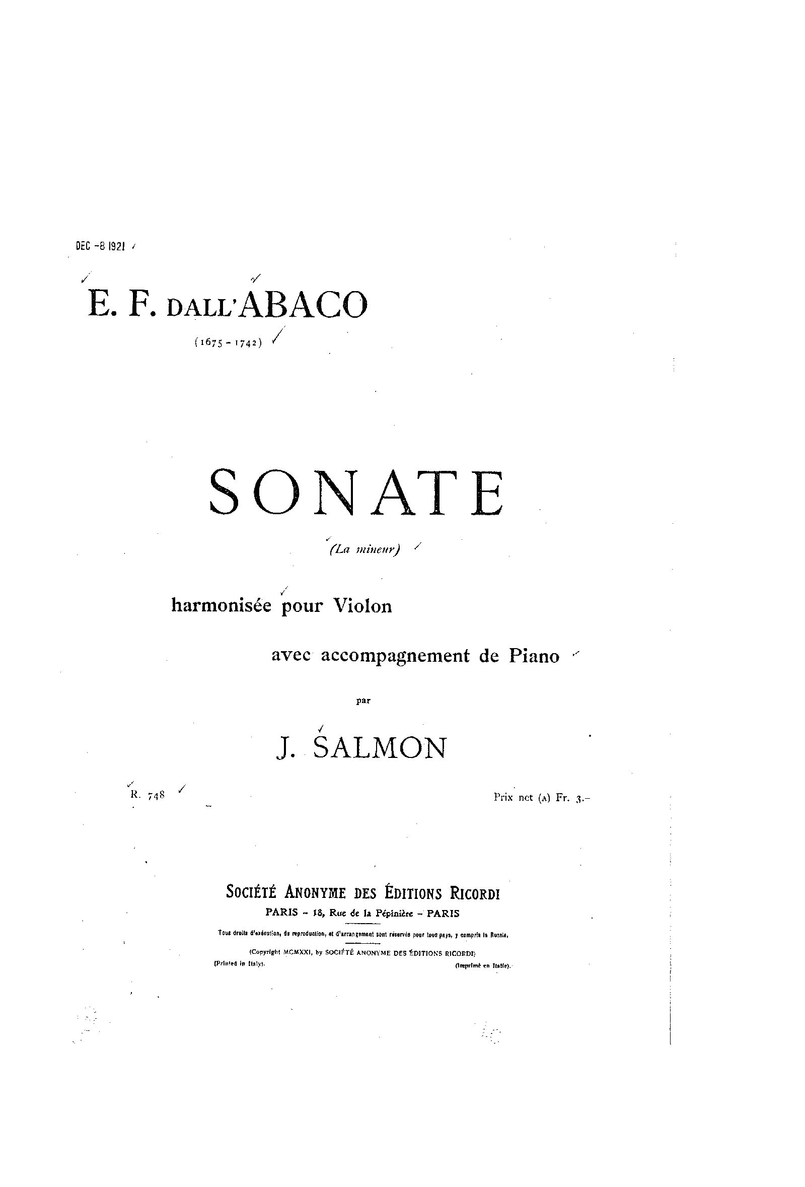 | Genre Categories | Sonatas; For violin, continuo; Scores featuring the violin; |
