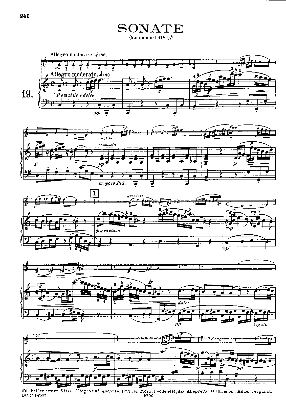 | Extra Information | Mozart's fragment ends with the first notes of bar 20 of the 3d movement. The completion from the second half of bar 20 on is by Maximilian Stadler. Cf. Neue Mozart-Ausgabe VIII,23 vol.2 p.VII—IX, 164—172. |