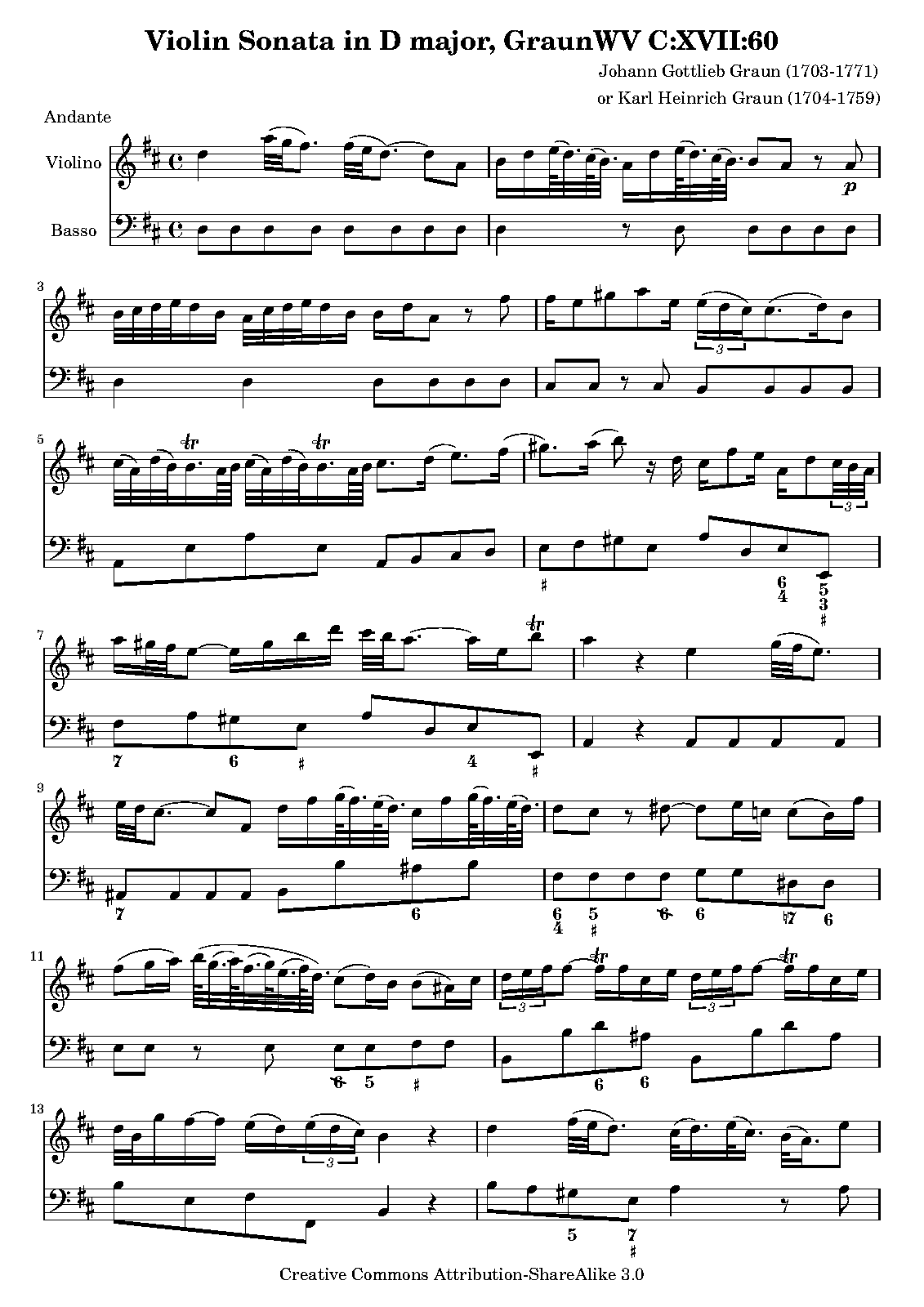 | Work Title | Violin Sonata in D major GraunWV C:XVII:60 |