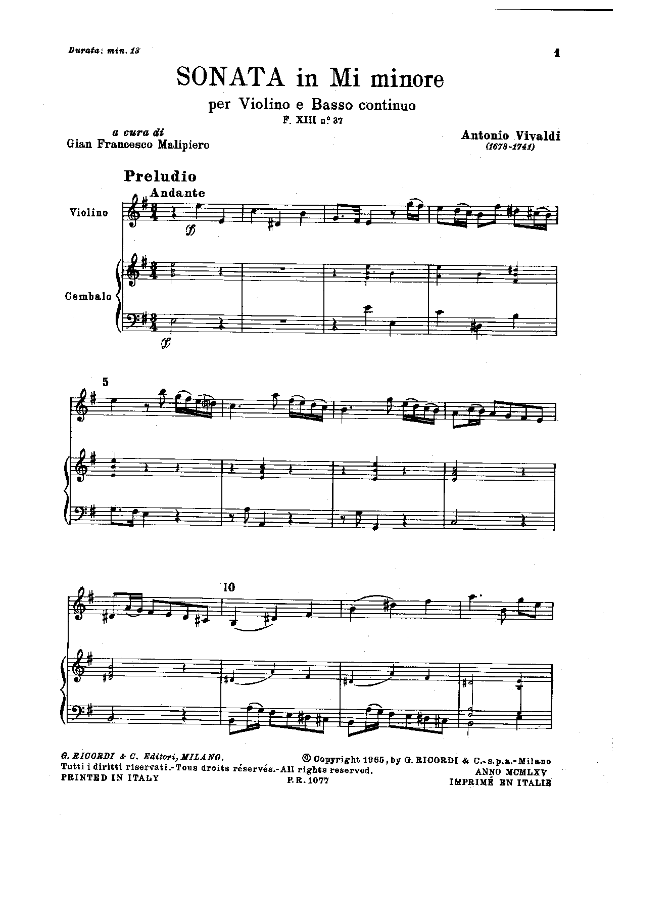Name Translations Sonata for violin and continuo in E minor (RV 16)
