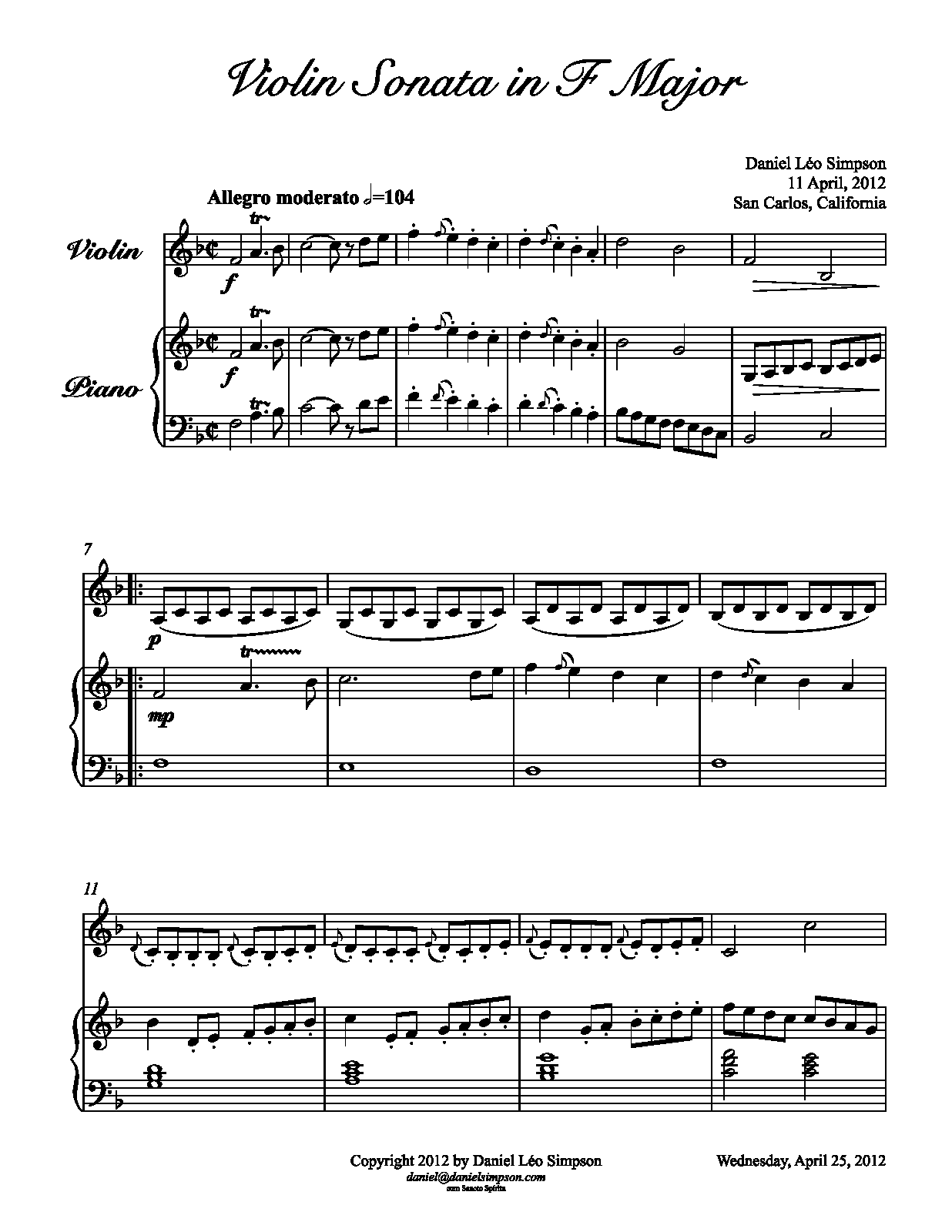| Work Title | Violin Sonata in F major |