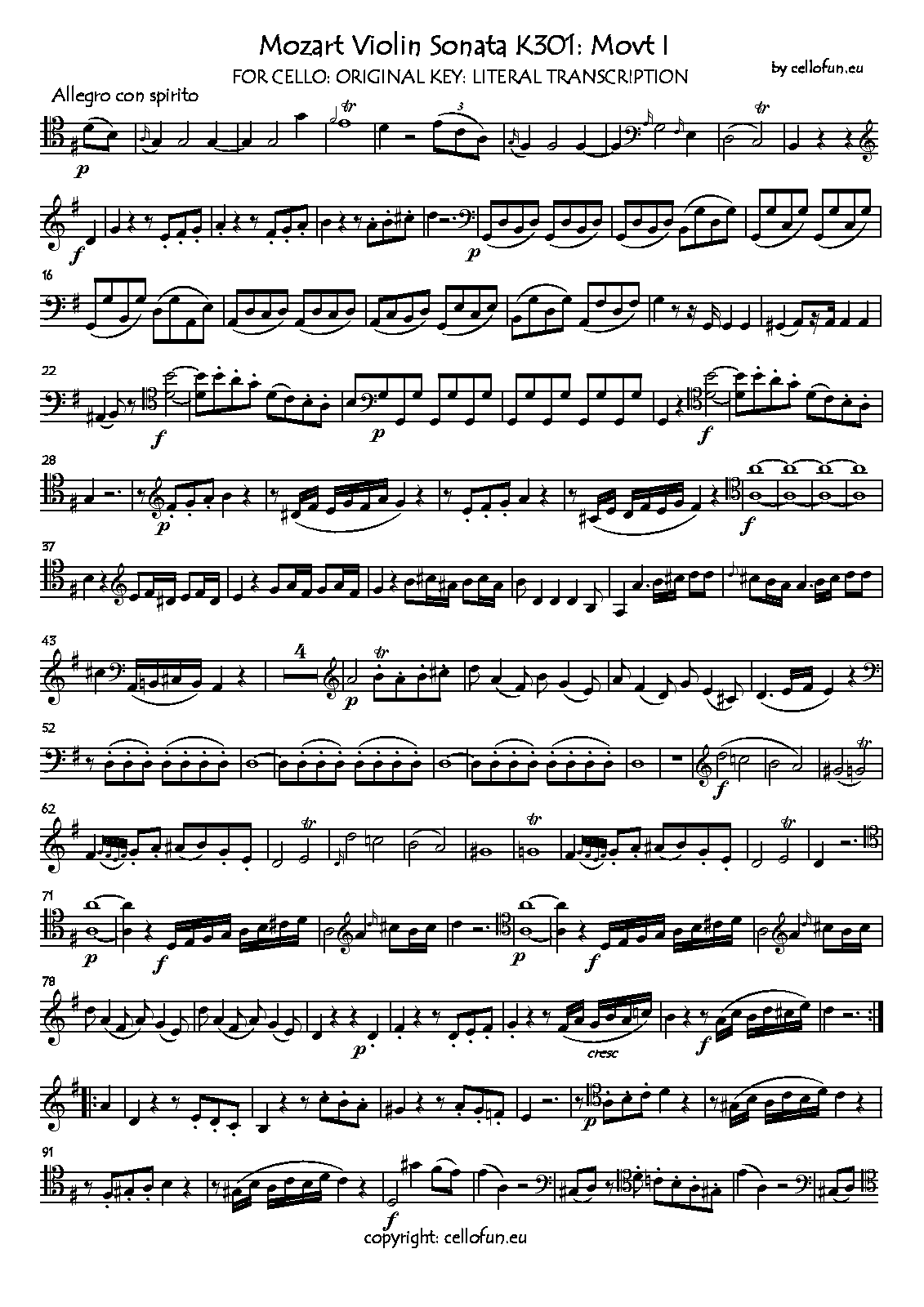 Misc. Notes In the original key therefore any original piano accompaniment part can be used. For best results, print on A4 paper with no margins. Four cello parts are offered: an "Urtext" part with only Mozart's indications, an Edited Version with fingering and bowing suggestions, a clean copy with no markings at all and an Easier Version. For more information and a play-along accompaniment, see cellofun.eu