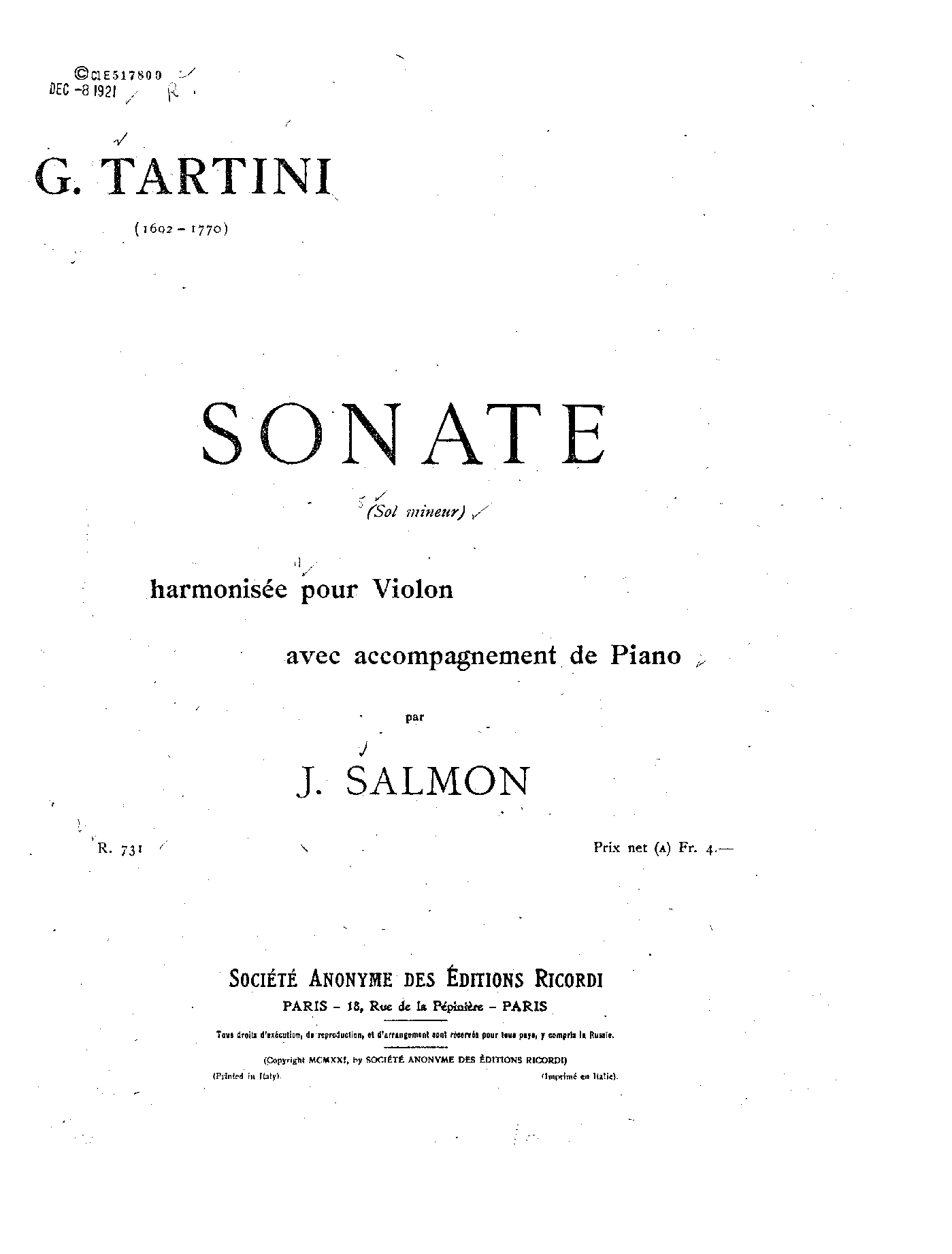 Parts of this work were arranged for clarinet: Gordon Jacob (1895 – 1984): Concertino, for clarinet & string orchestra (Sel. & arr. from 2 violin sonatas of G. Tartini). Published: Boosey & Hawkes c. 1945