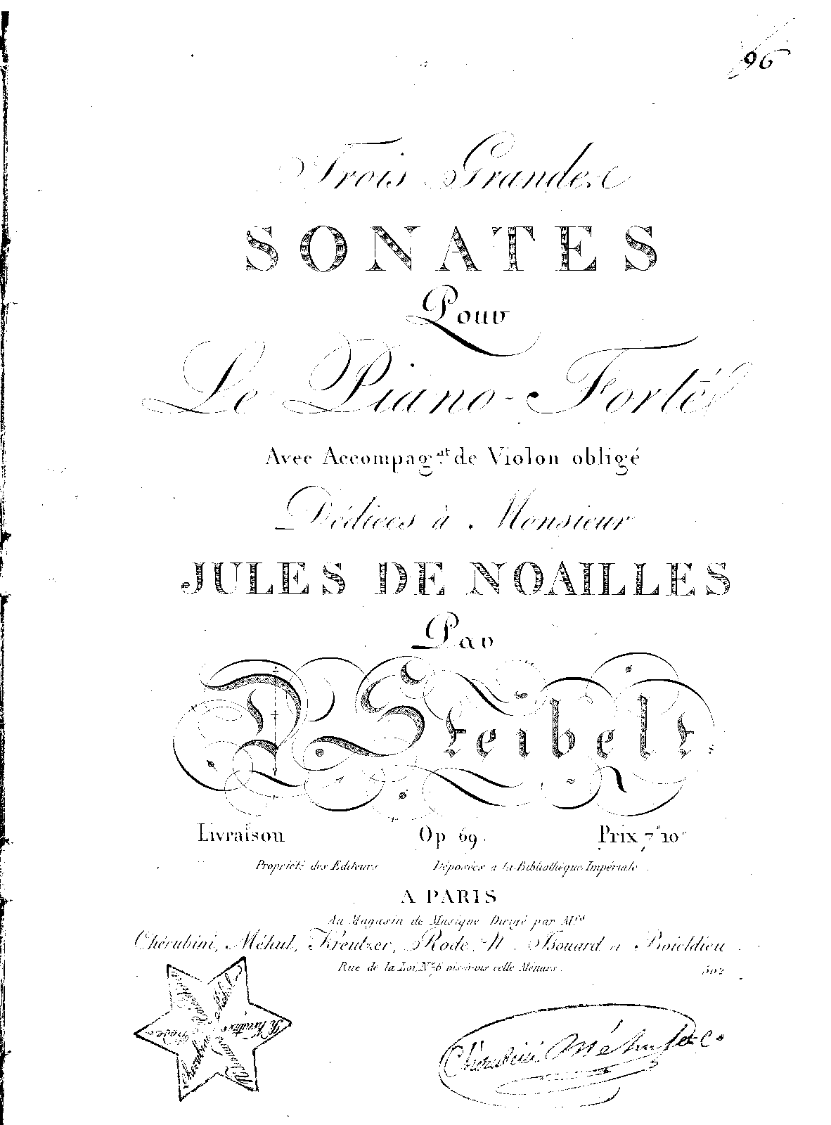 (In fact, a sonata Op.69, not referred to as part of a group of 3, with the same dedicatee (Noailles) and in the same key as the Sibley sonata above (G minor), was reviewed in the February 1808 AMZ (as published by Breitkopf und Härtel), on page 336.)