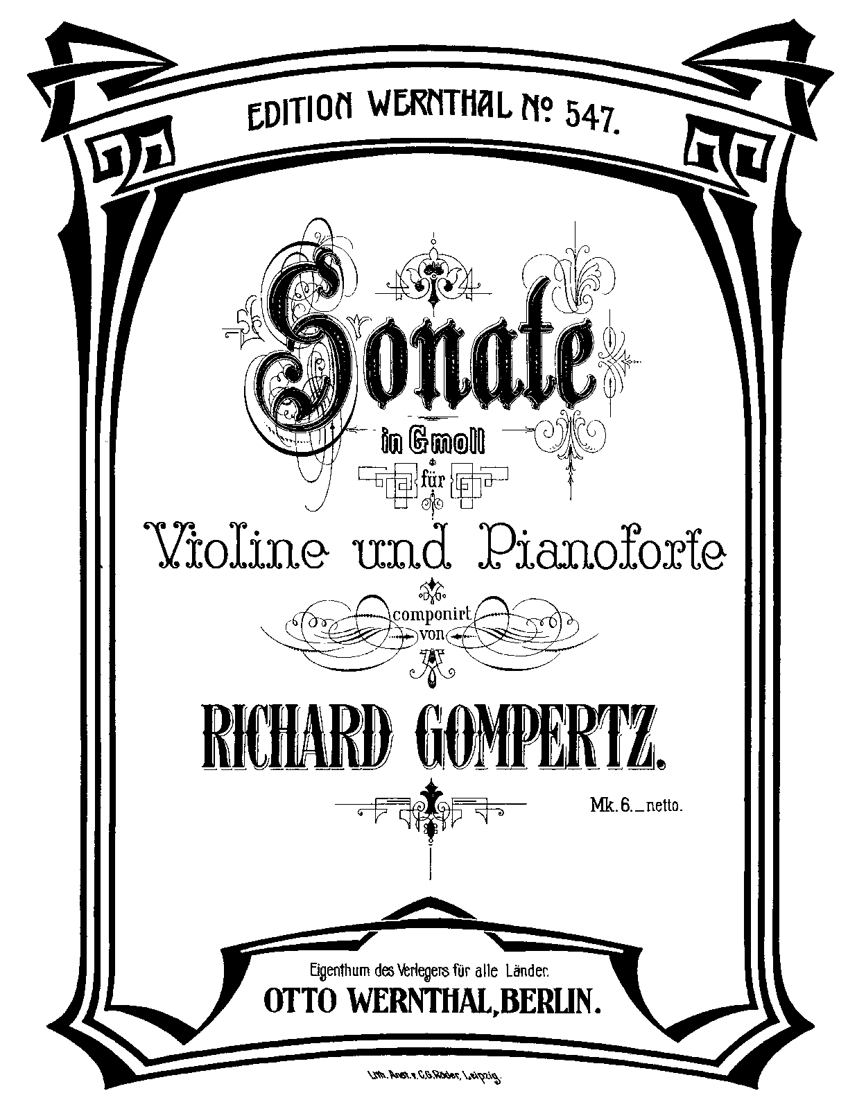 A performance of a (this?) violin sonata by Gompertz (as a newly heard work), by Gerhardt and Witek (later husband and wife), was noted by Leopold Schmidt in the Kritischer Rundschau of the Musikpädagogische Blatter, 15. November 1901 (p.363.) - Schissel