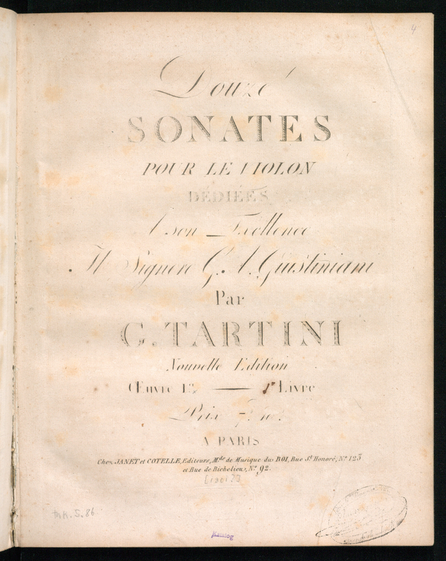 - Op.1 published by Le Cene, Amsterdam in 1734 as 12 Sonatas and a Pastorale