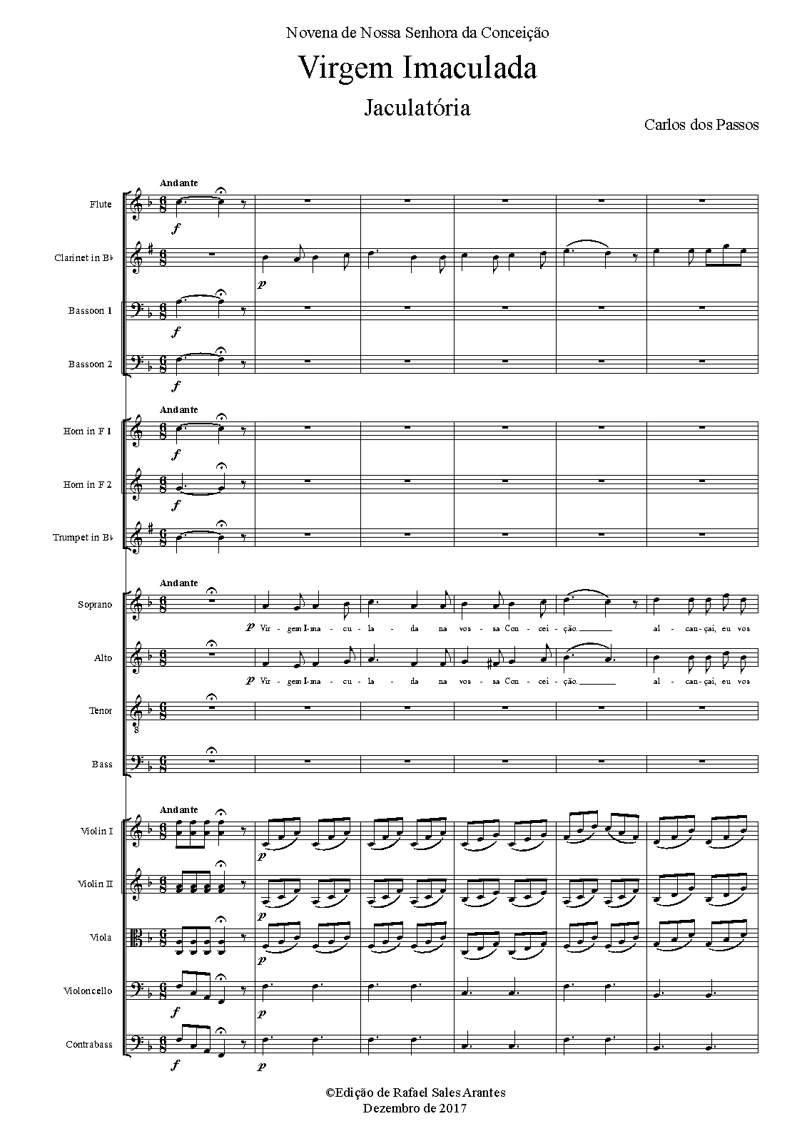 | Instrumentation | Voices: mixed chorus (SATB) Orchestra: flute, clarinet (B♭), 2 bassoons, 2 horns (F), trumpet (B♭), strings |