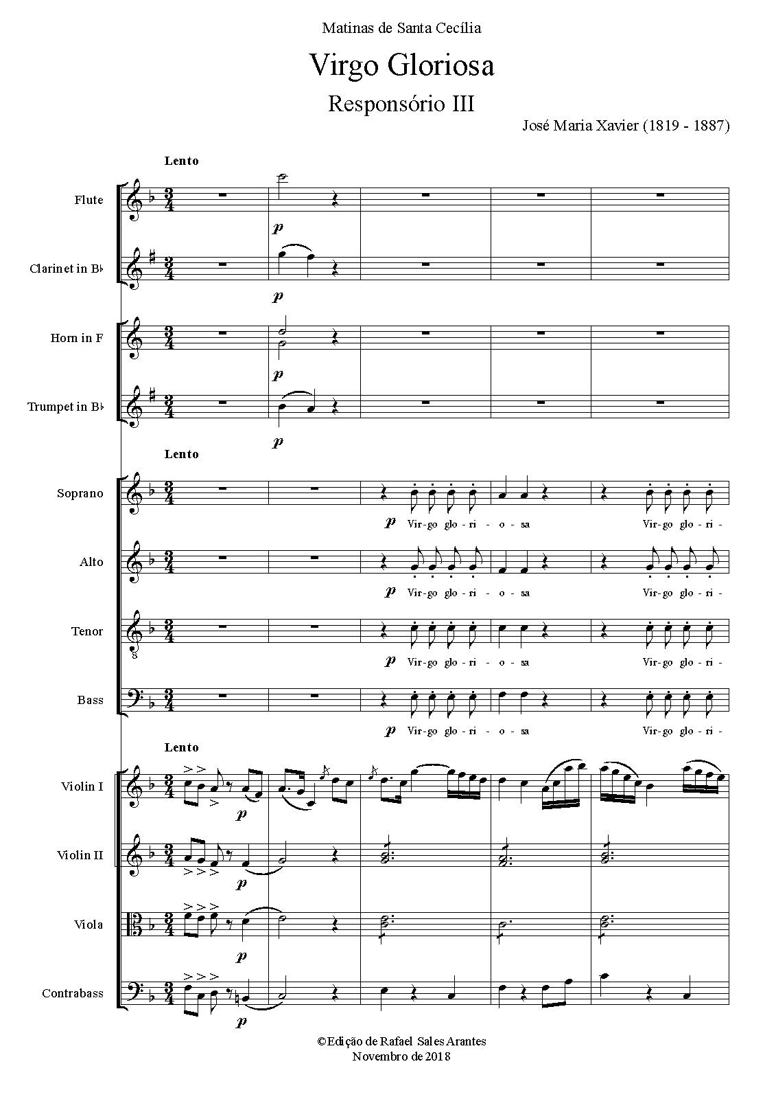 | Instrumentation | Voices: mixed chorus (SATB) Orchestra: flute, clarinet (B♭), 2 horns (F), trumpet (B♭), strings |