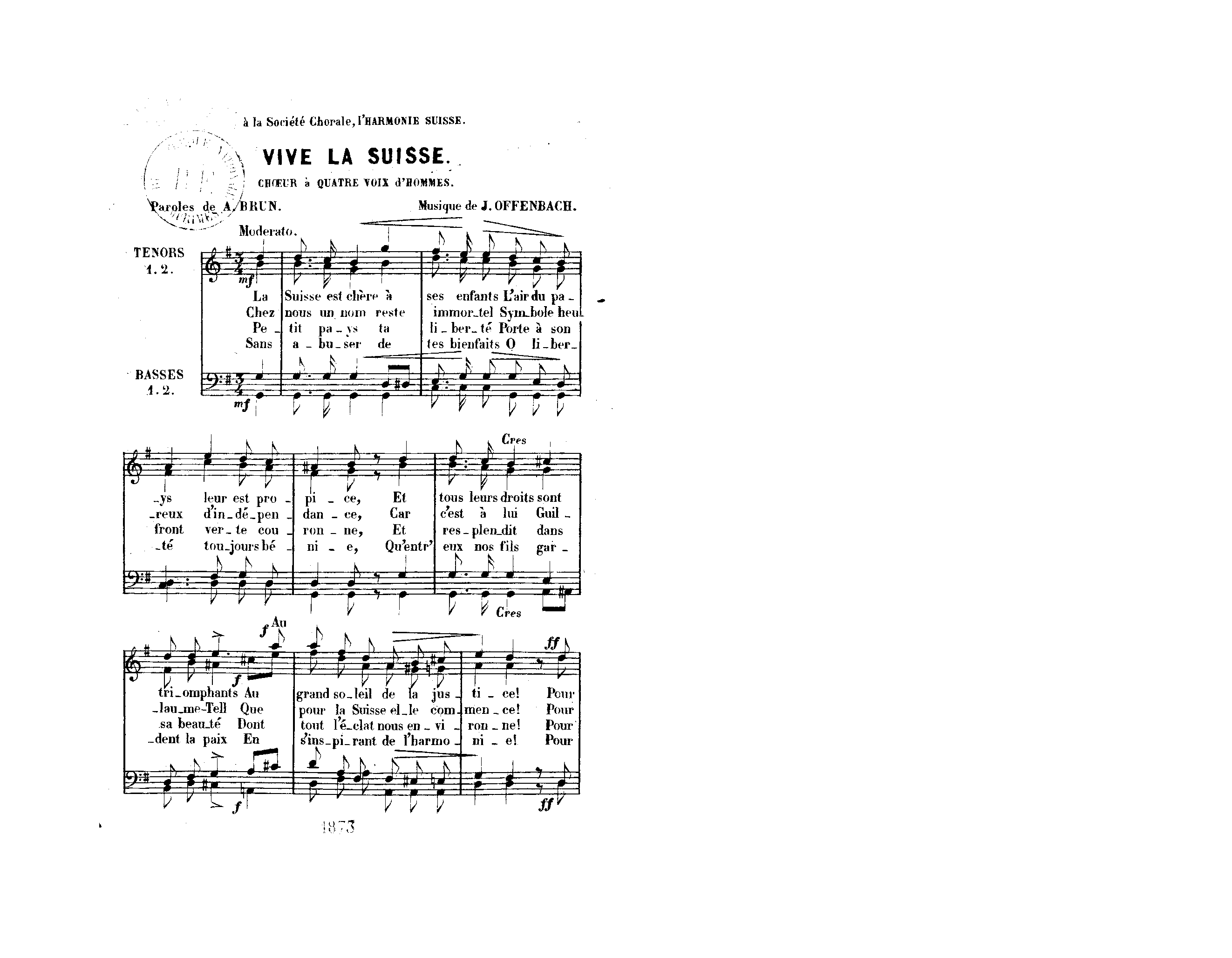 | Dedication | à la société chorale, L'harmonie Suisse |