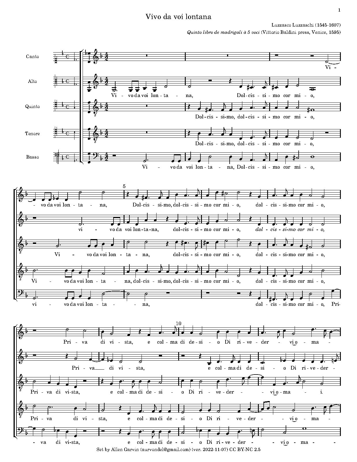 | First Publication | 1595 in Quinto libro de madrigali à 5 voci (Venice: Vittorio Baldini press) |